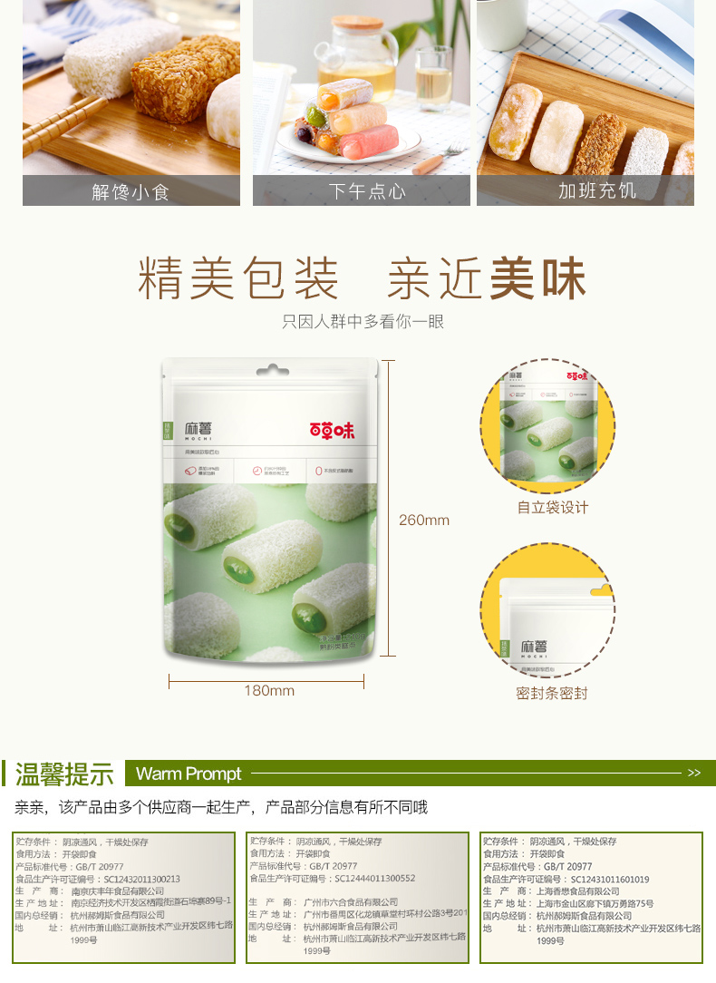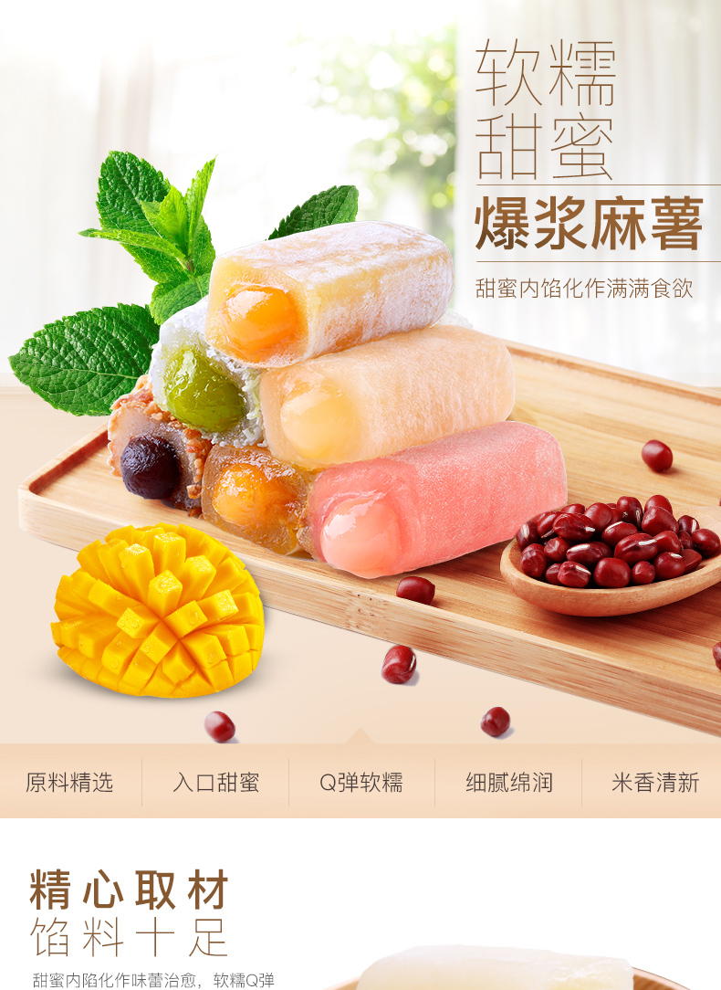 超好吃夹心麻薯糯米糍团!精选取材,馅料十足,入口甜蜜,软软Q弹中,细腻绵润,米香清新!这缠绵于口腔的滋味!一吃就上瘾!多种口味任君选择!