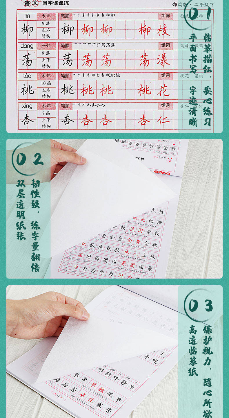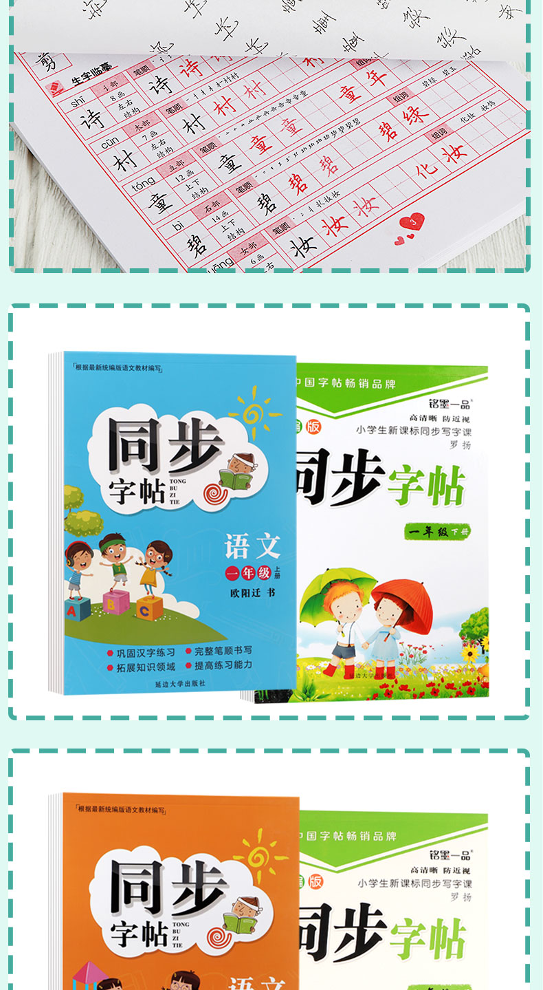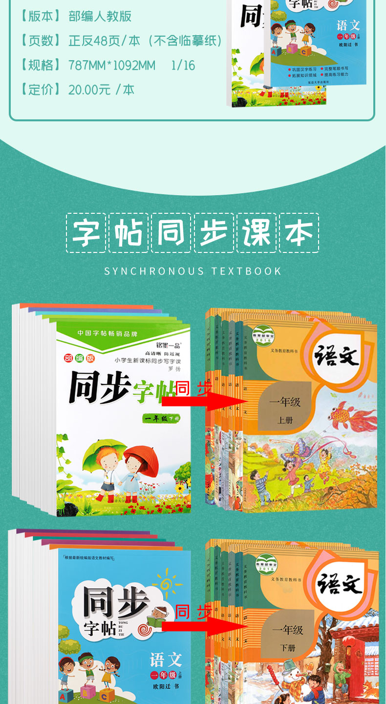 高清临摹,双面书写,加厚纸张,人教同步新课标! 让孩子更早纠正字体,写出一手漂亮字!