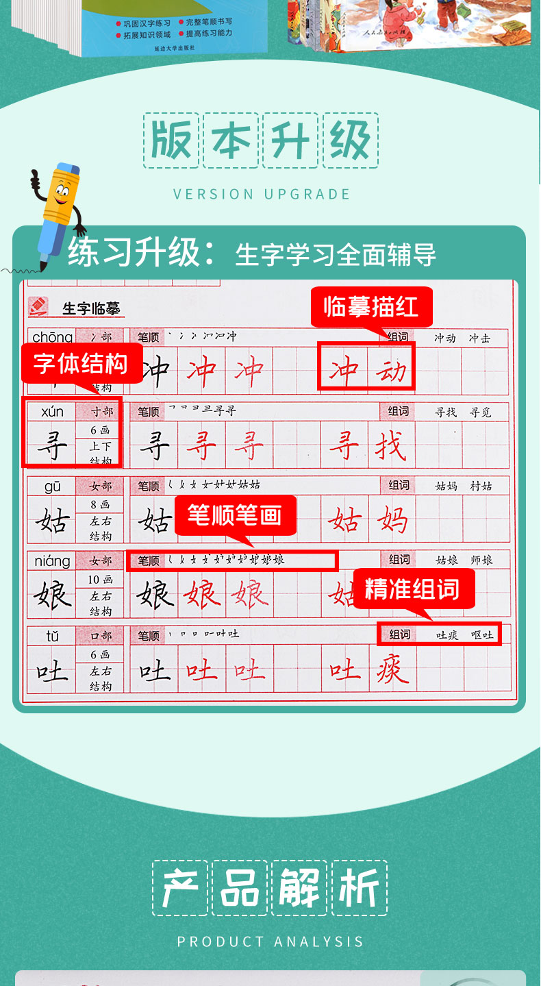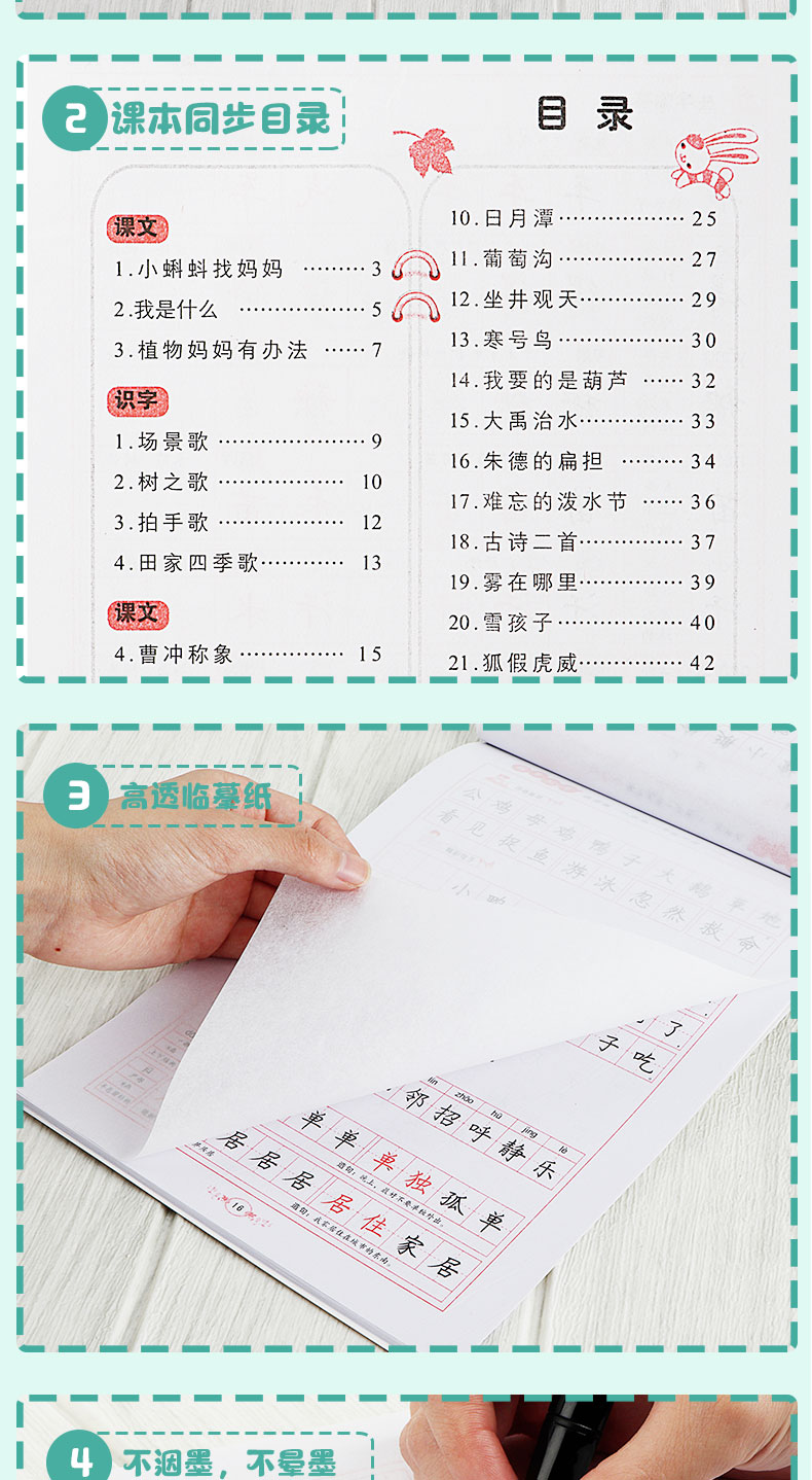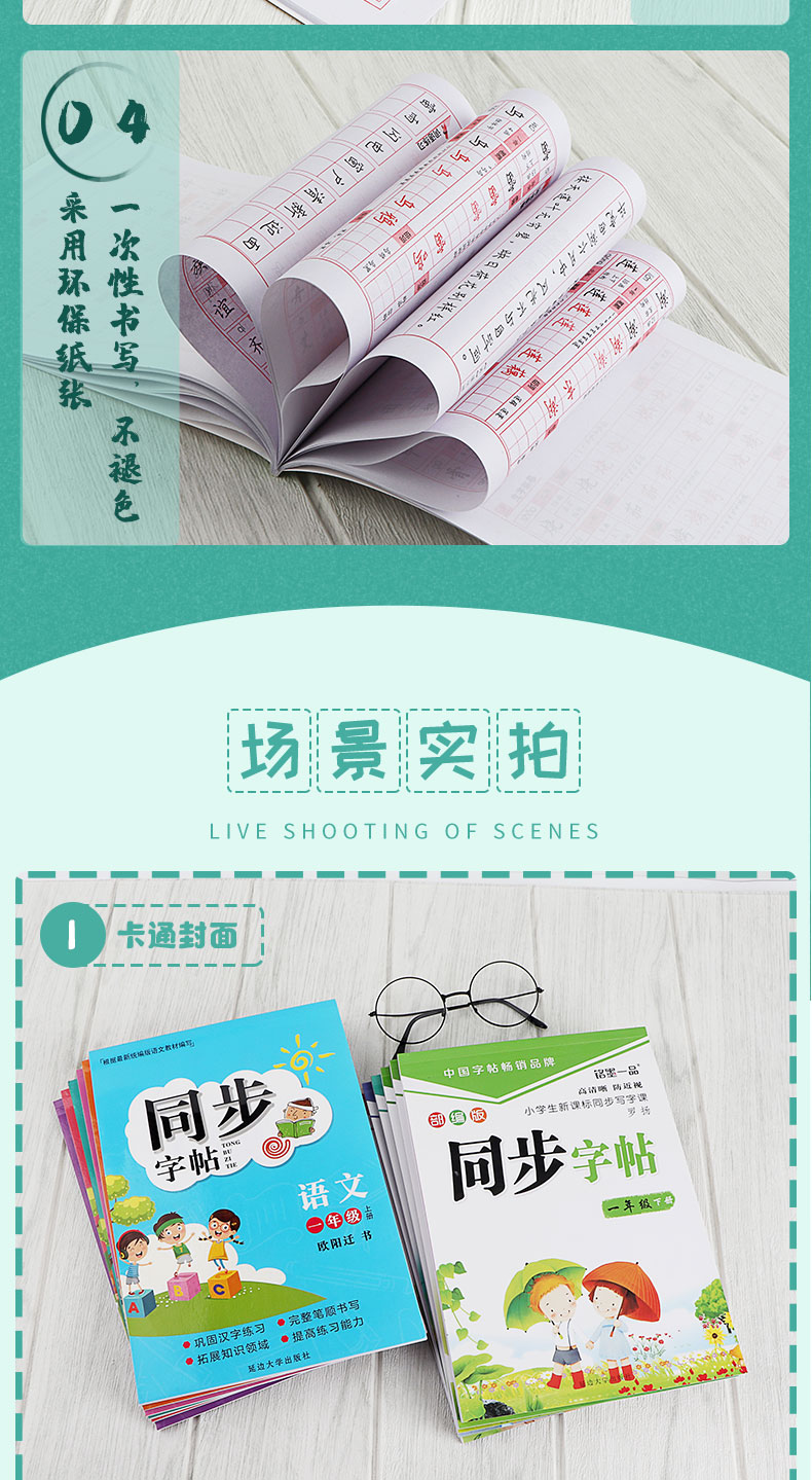 高清临摹,双面书写,加厚纸张,人教同步新课标! 让孩子更早纠正字体,写出一手漂亮字!