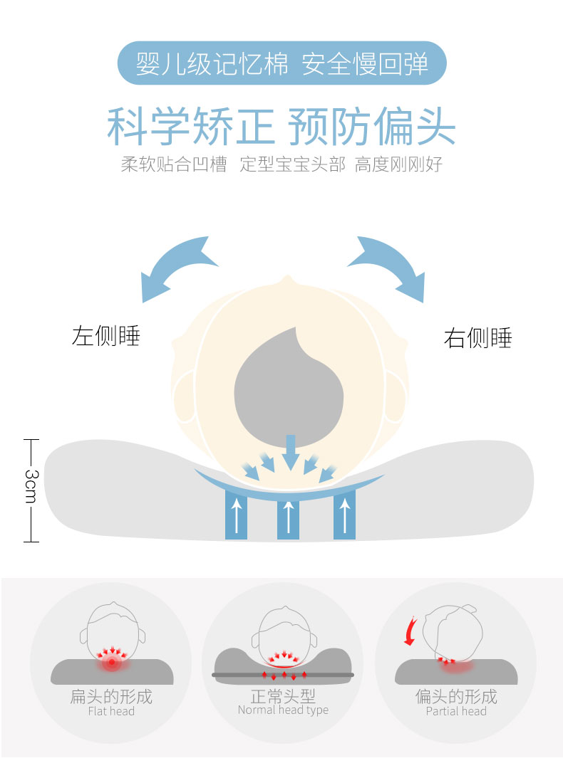 婴幼儿定型枕头,科学矫正,预防偏头,蜂窝状3D透气孔,不闷不热,亲肤舒棉,柔软细腻,记忆慢回弹,让宝宝轻松入眠!