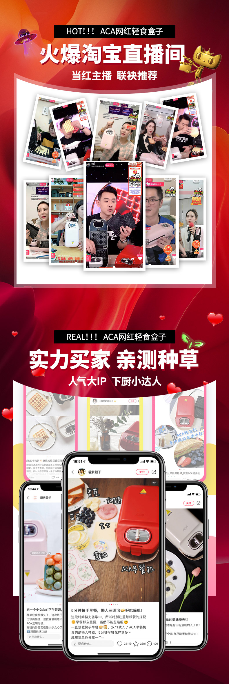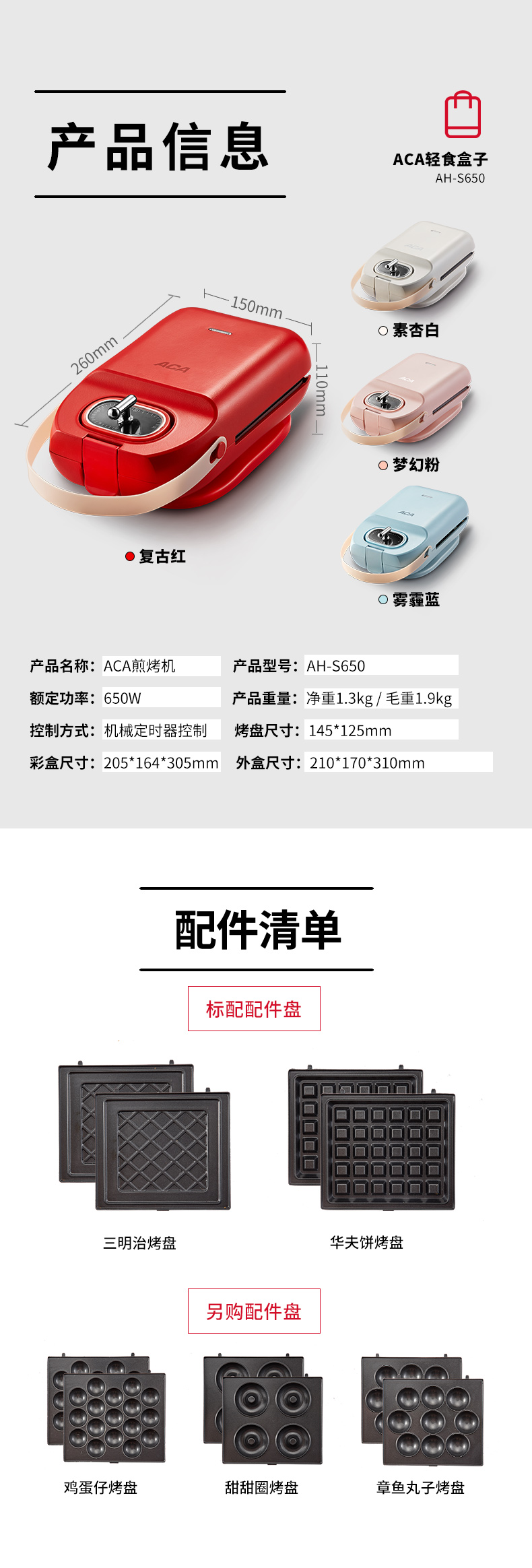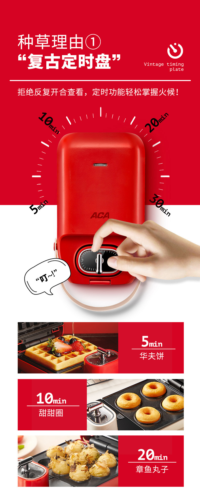 ACA三明治早餐机,轻食机华夫饼机,家用多功能加热吐司压烤机面包机,30分钟定时,5分钟搞定早餐.