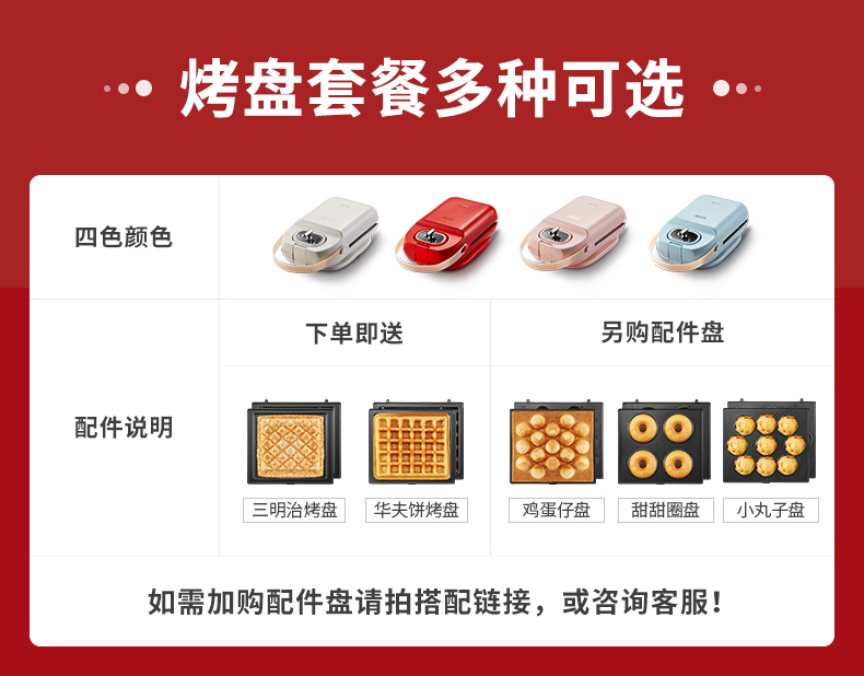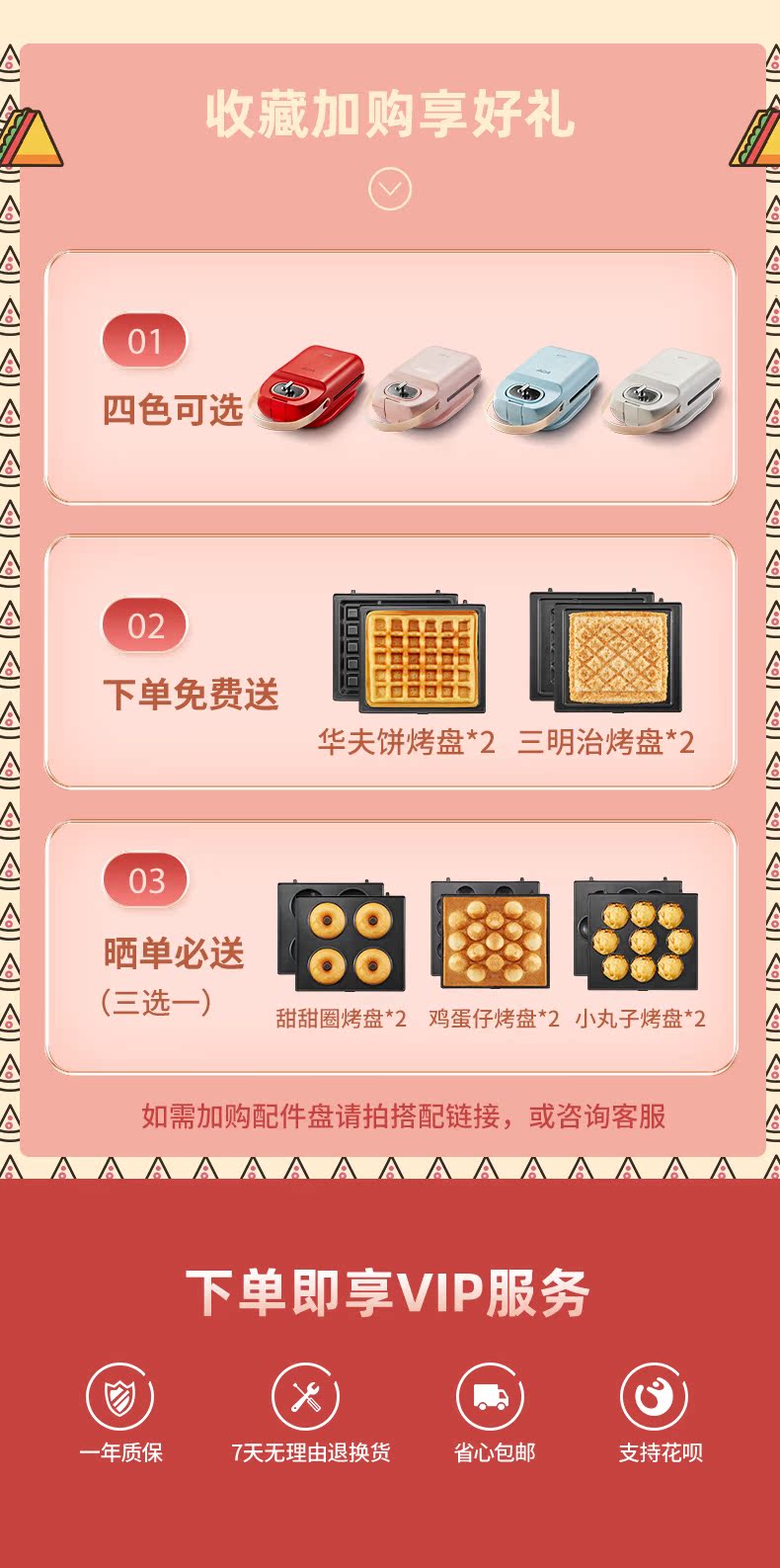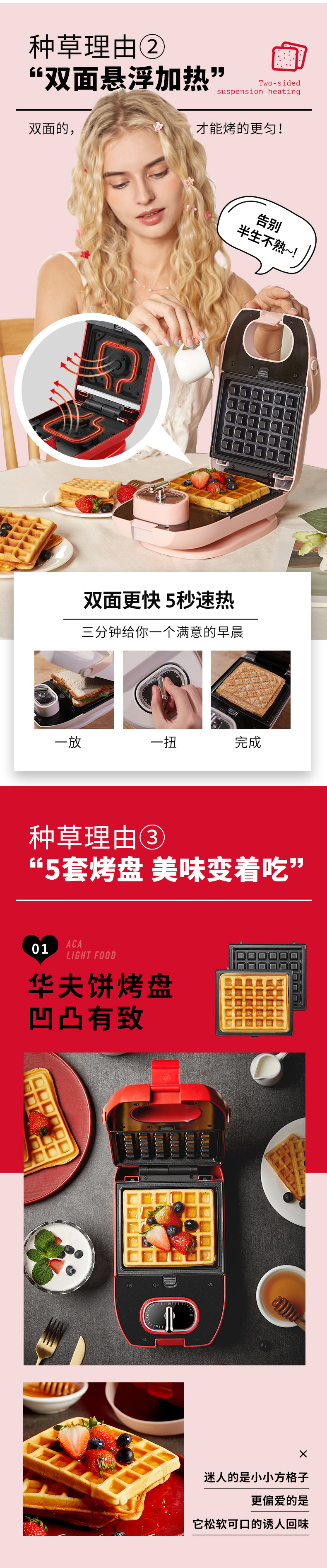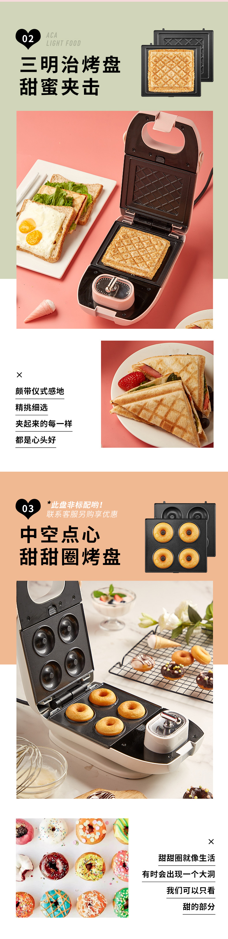 ACA三明治早餐机轻食机华夫饼机家用多功能加热吐司压烤机面包机