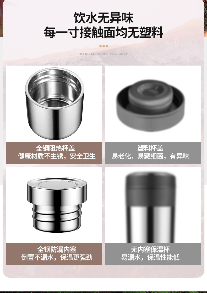 316全不锈钢更健康,36小时长效保温,大容量一键激光刻字,适合户外、家用、车载。密封性更好。品质有保证,多款任你挑选。