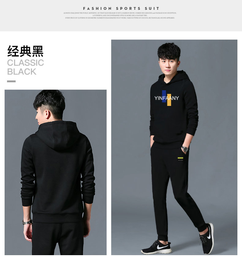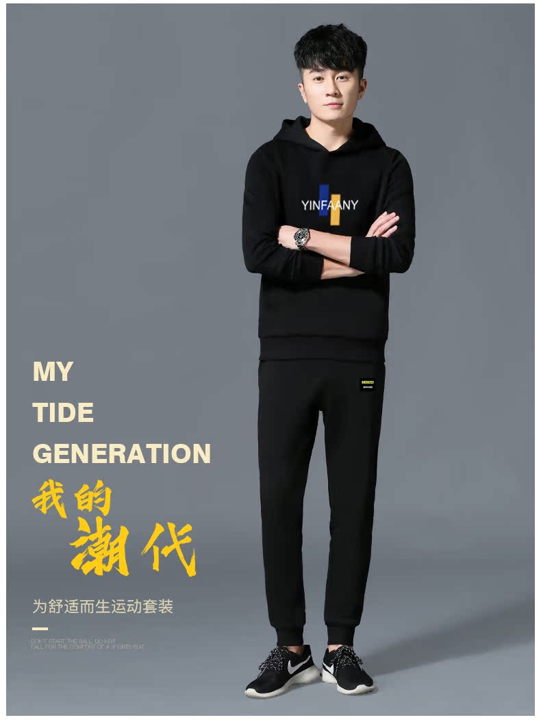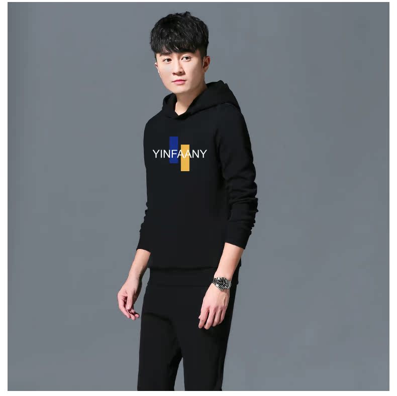 秋冬季男士卫衣加绒加厚学生韩版潮流连帽休闲套装两件套运动服潮