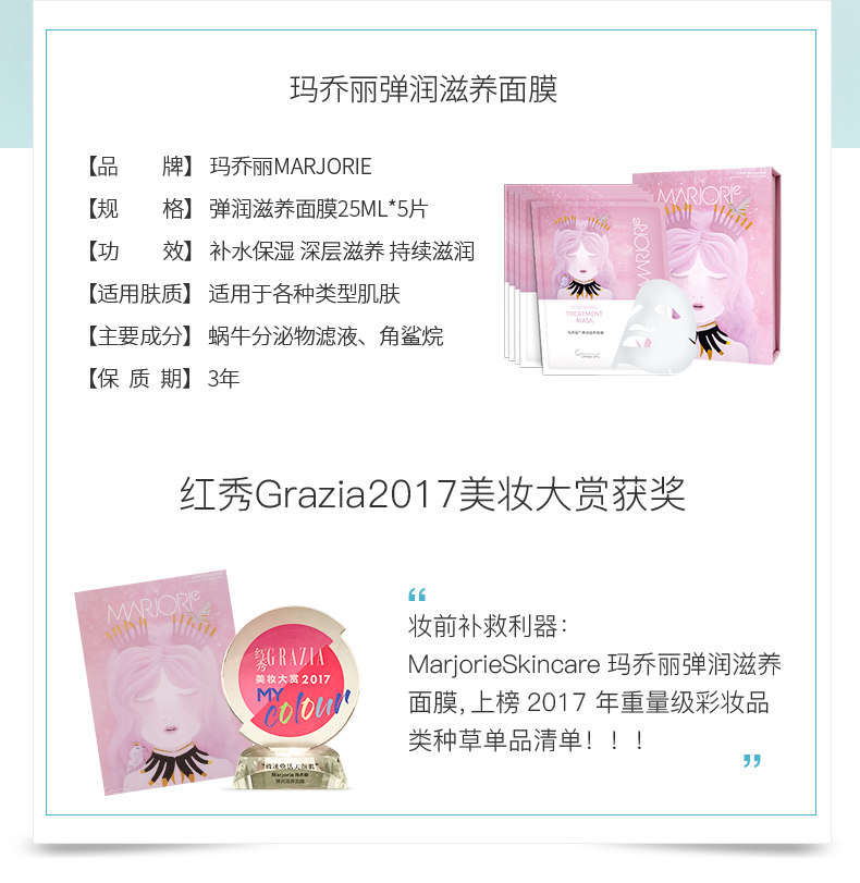 玛乔丽MARJORIE人参蜗牛面膜补水保湿女面膜清洁毛孔提亮醒肤舒缓