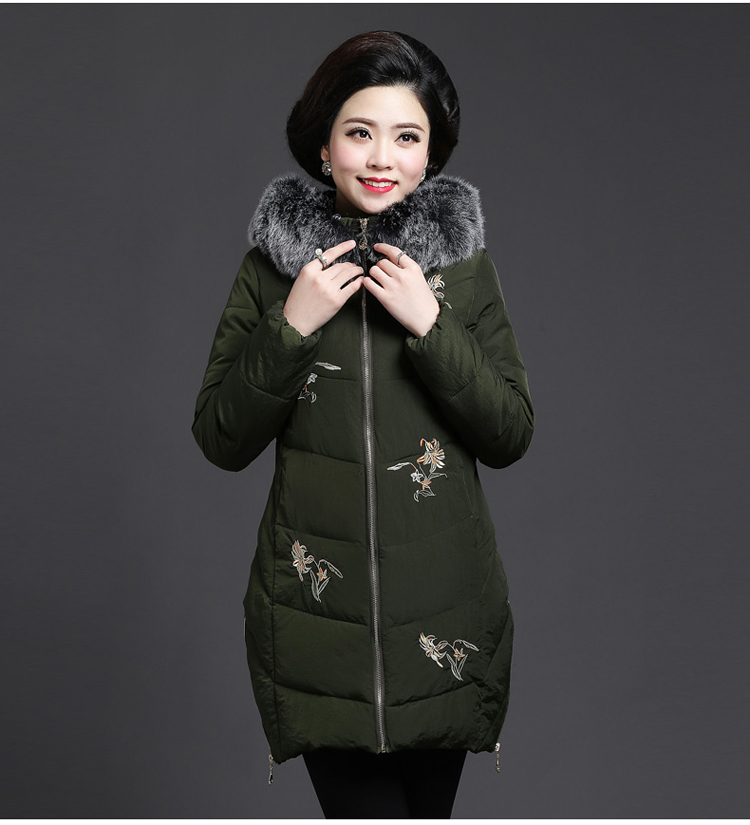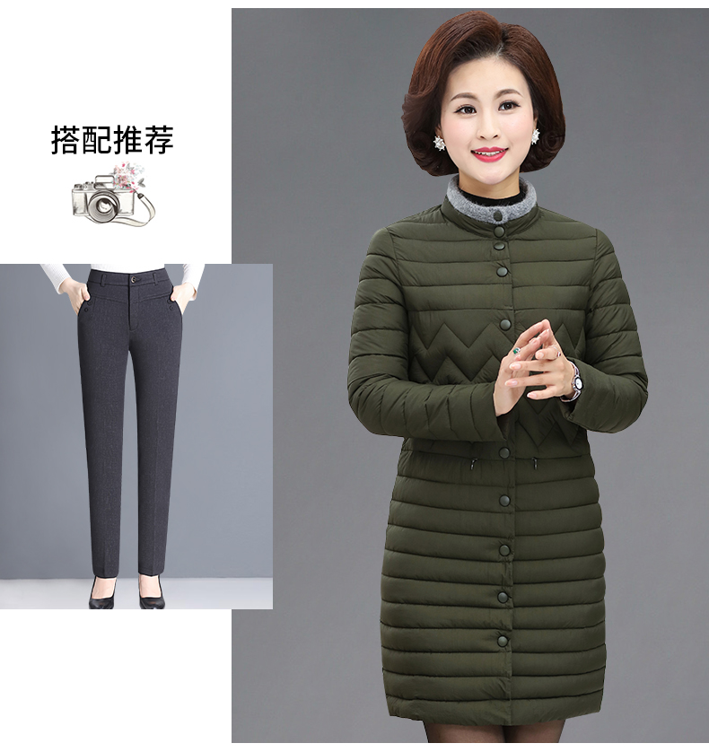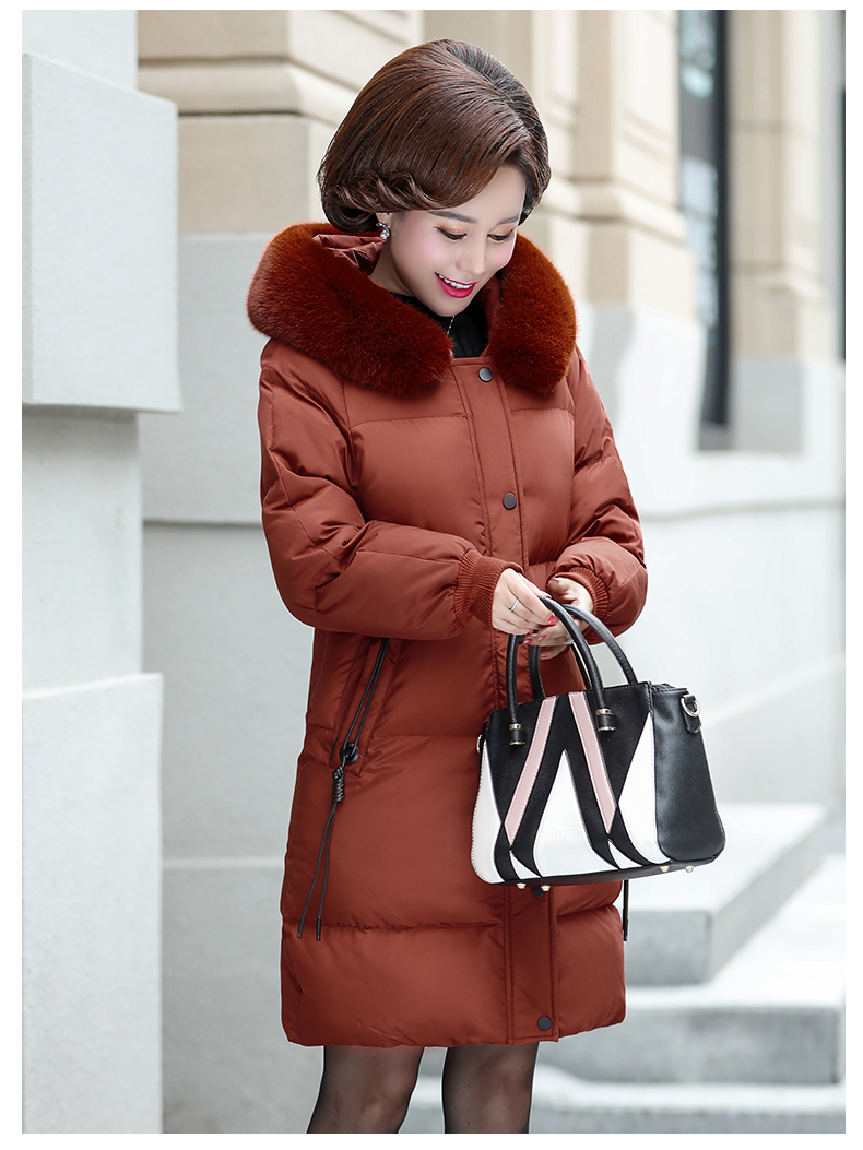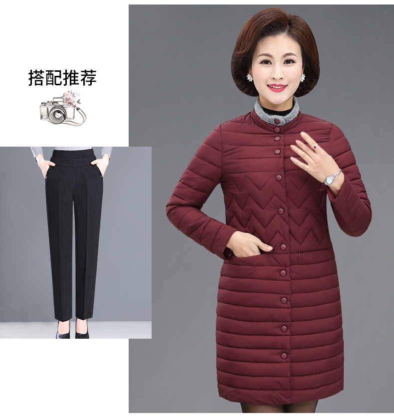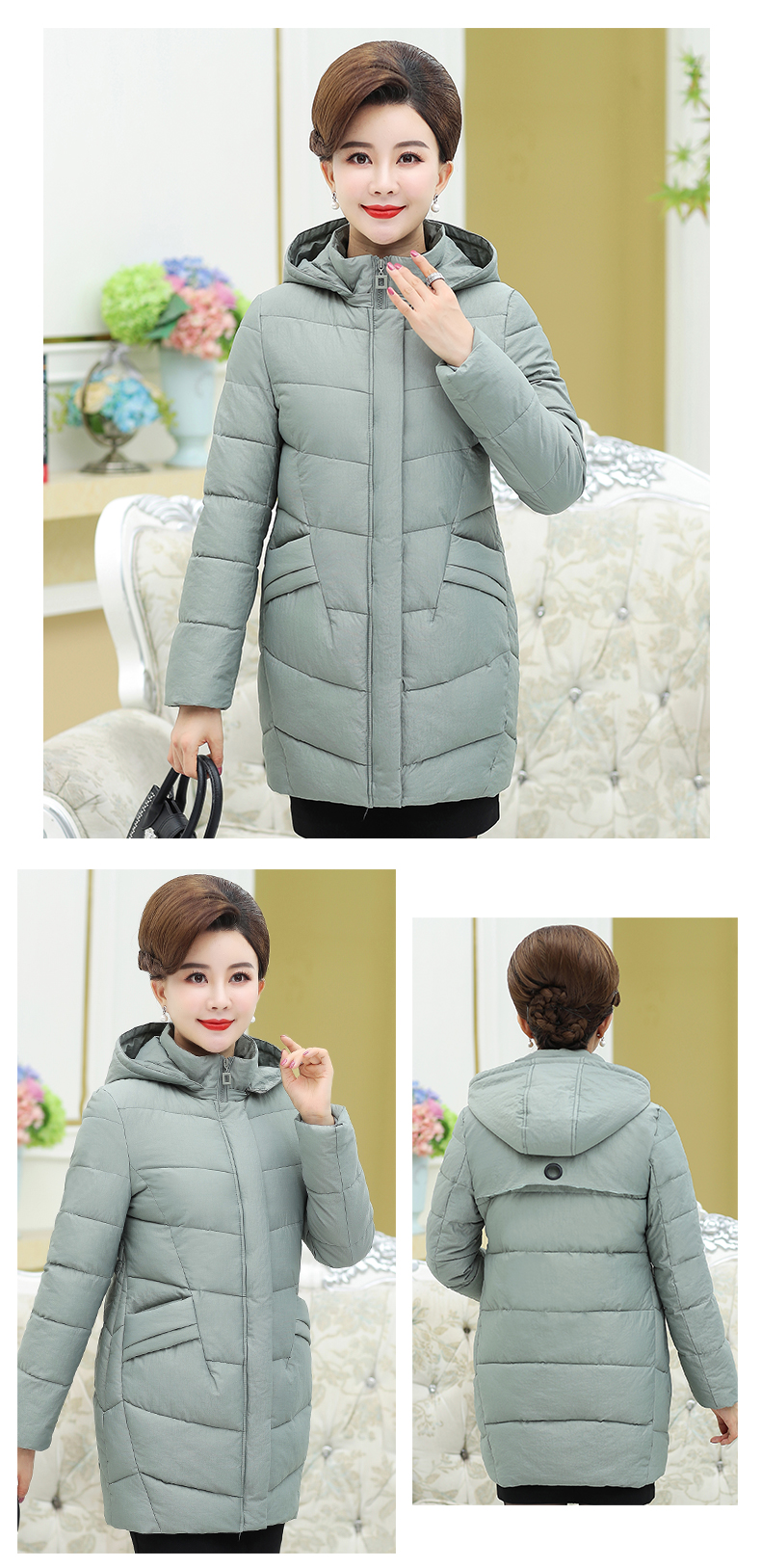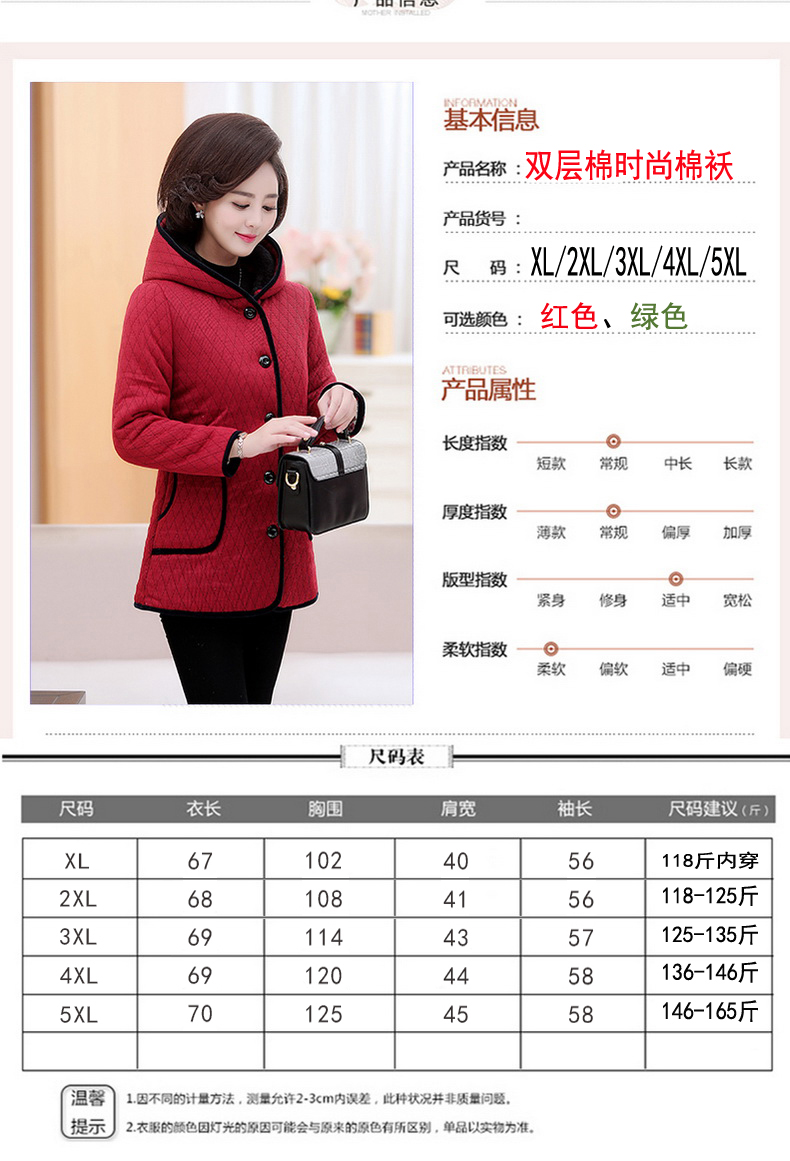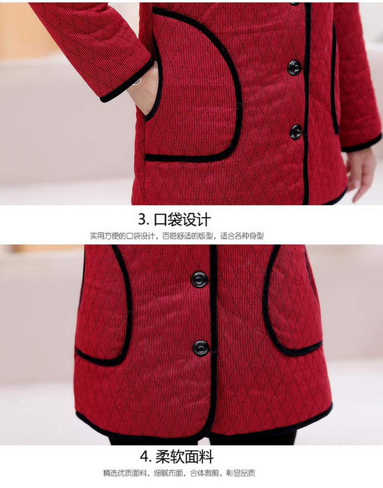 加厚羽绒棉服,中长款洋气妈妈冬装,新款棉袄外套。连帽设计,贴合颈部,舒适保暖。肩部设计走线精细,展出立体美观。袖口设计收缩,防风防寒。