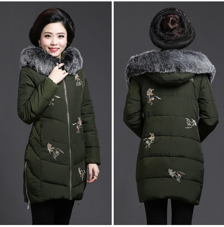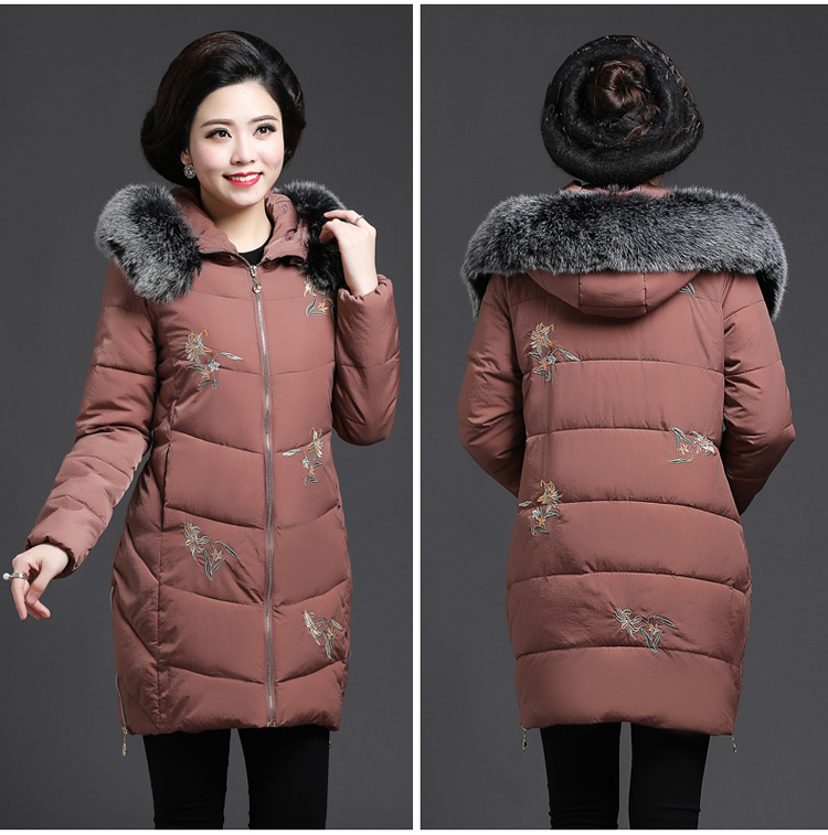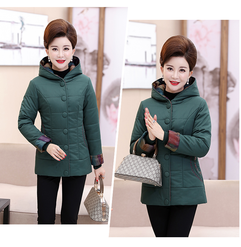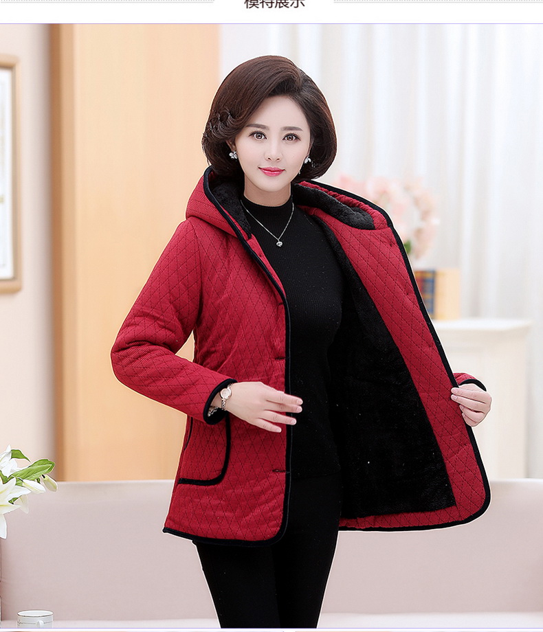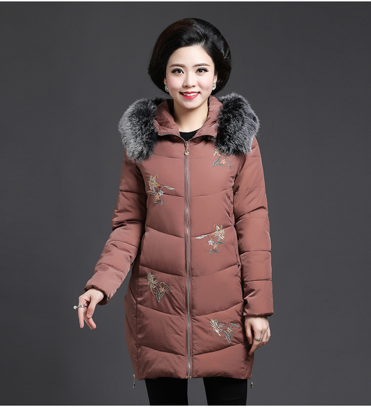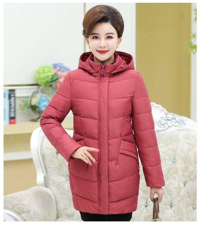 中老年女装冬装新款外套40-50岁中年妈妈装中长款连帽棉服棉衣