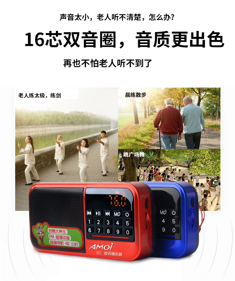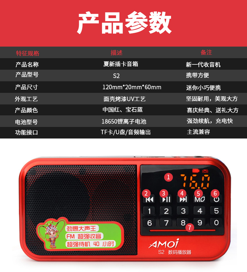 夏新S2收音机老年人收音机老人便携式小音箱迷你插卡袖珍式低音炮