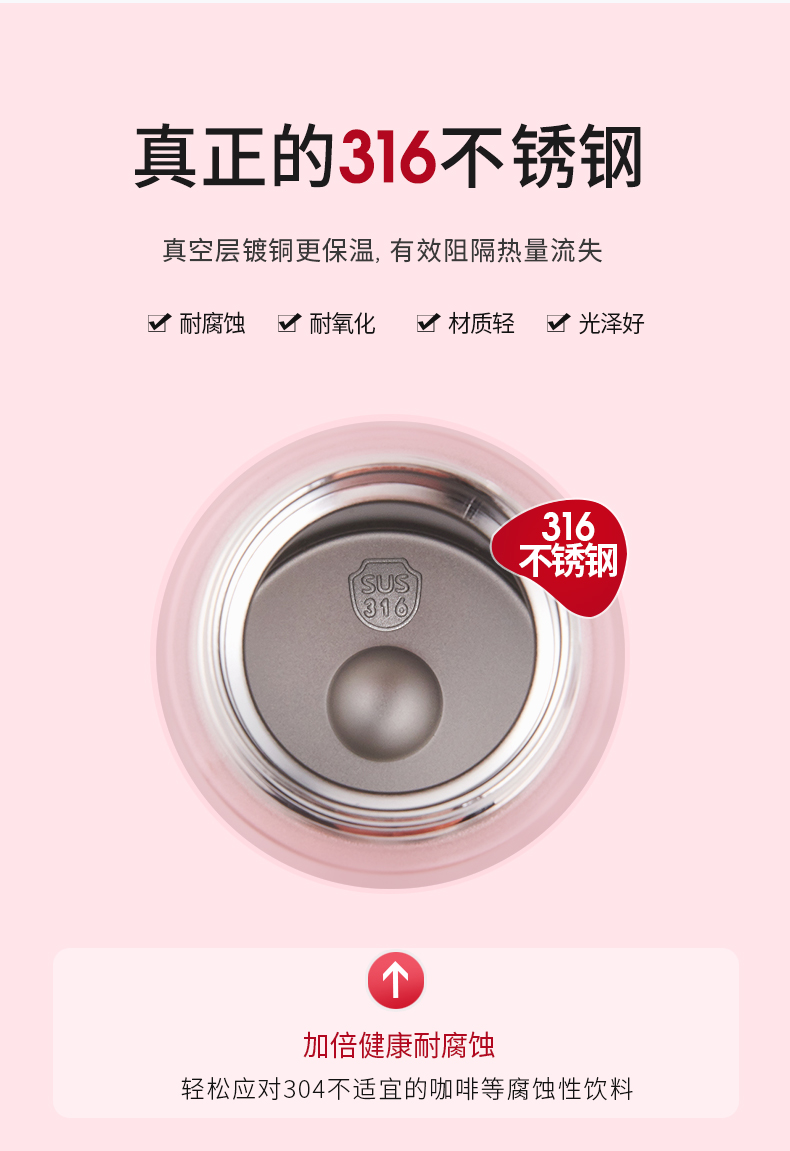 【conku康酷】医用316不锈钢,耐腐蚀,耐氧化,光泽好,长效保温,密封防漏,轻盈时尚,隐藏提手,食品级材质,英国进口tirtan内盖,经典原色,简约轻盈时尚,小巧便携随身~