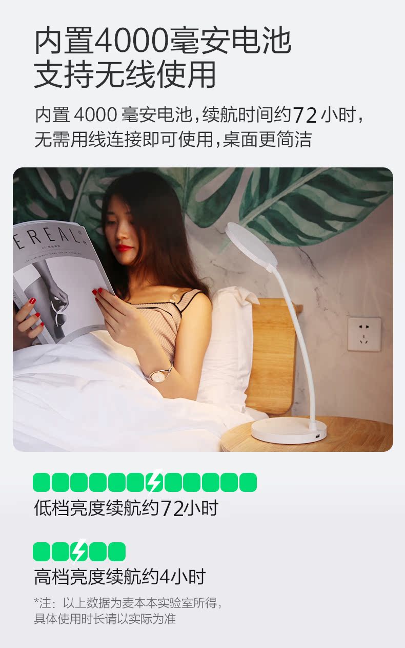 全球600万粉丝认可,可充电插电usb小台灯,学生寝室宿舍学习用,写字书桌led床头灯,充插两用,暖色温和色温,无极调光。