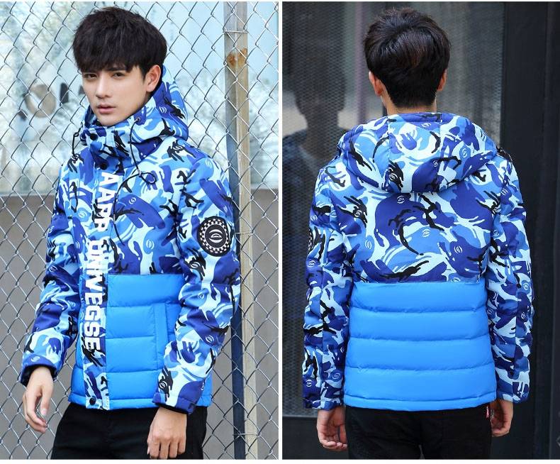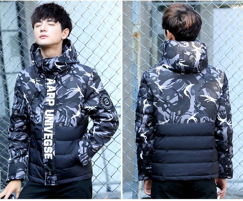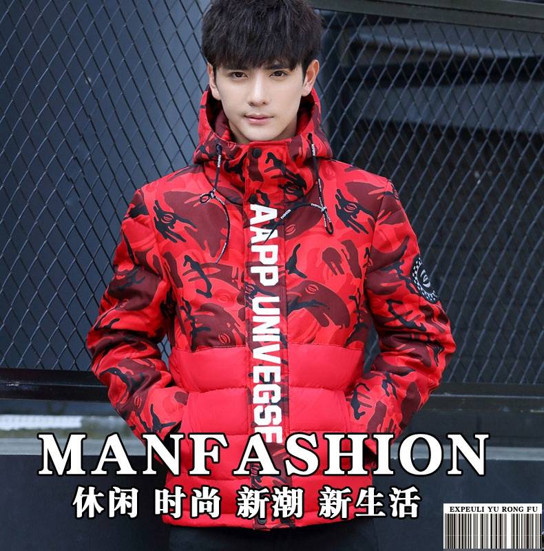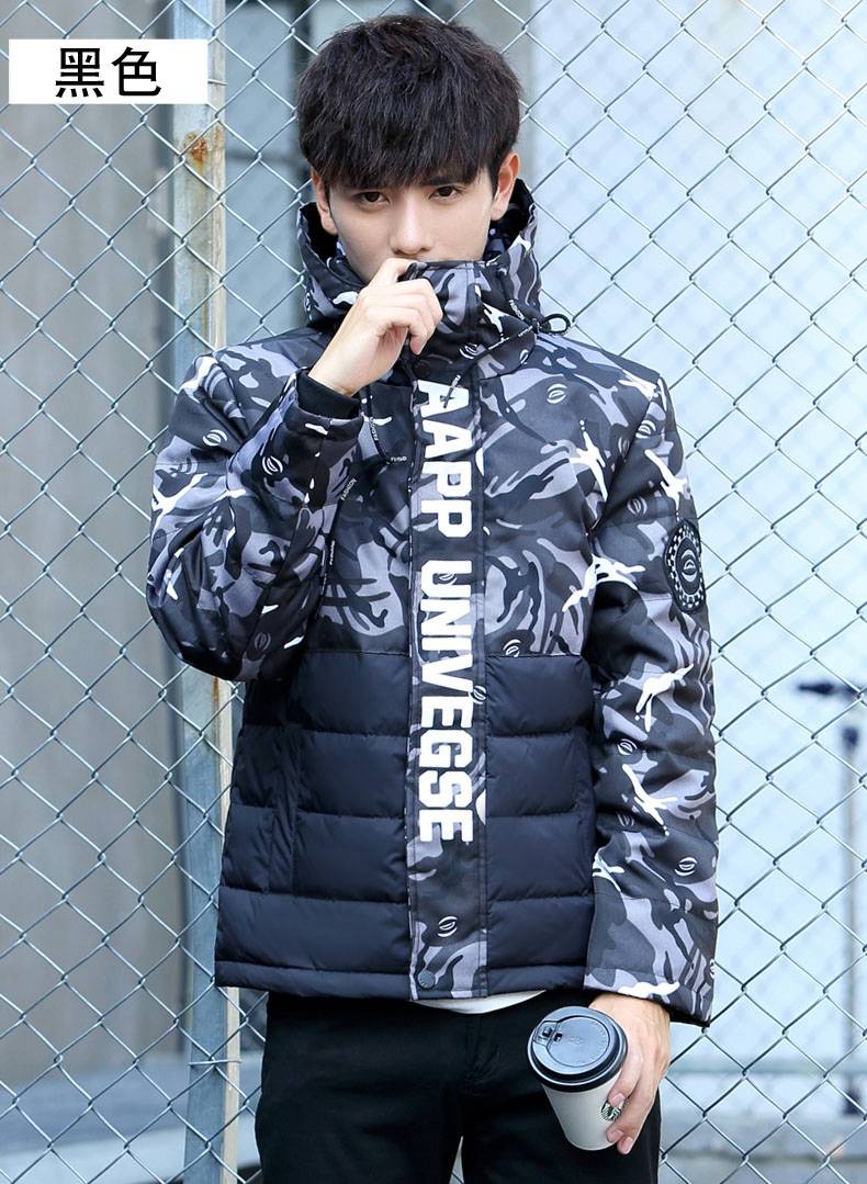 羽绒服男短款冬季2019新款加厚爆款潮牌迷彩帅气青年防寒连帽外套