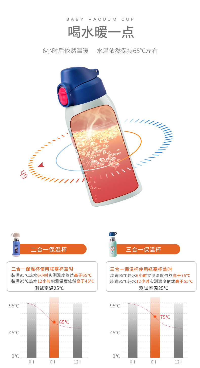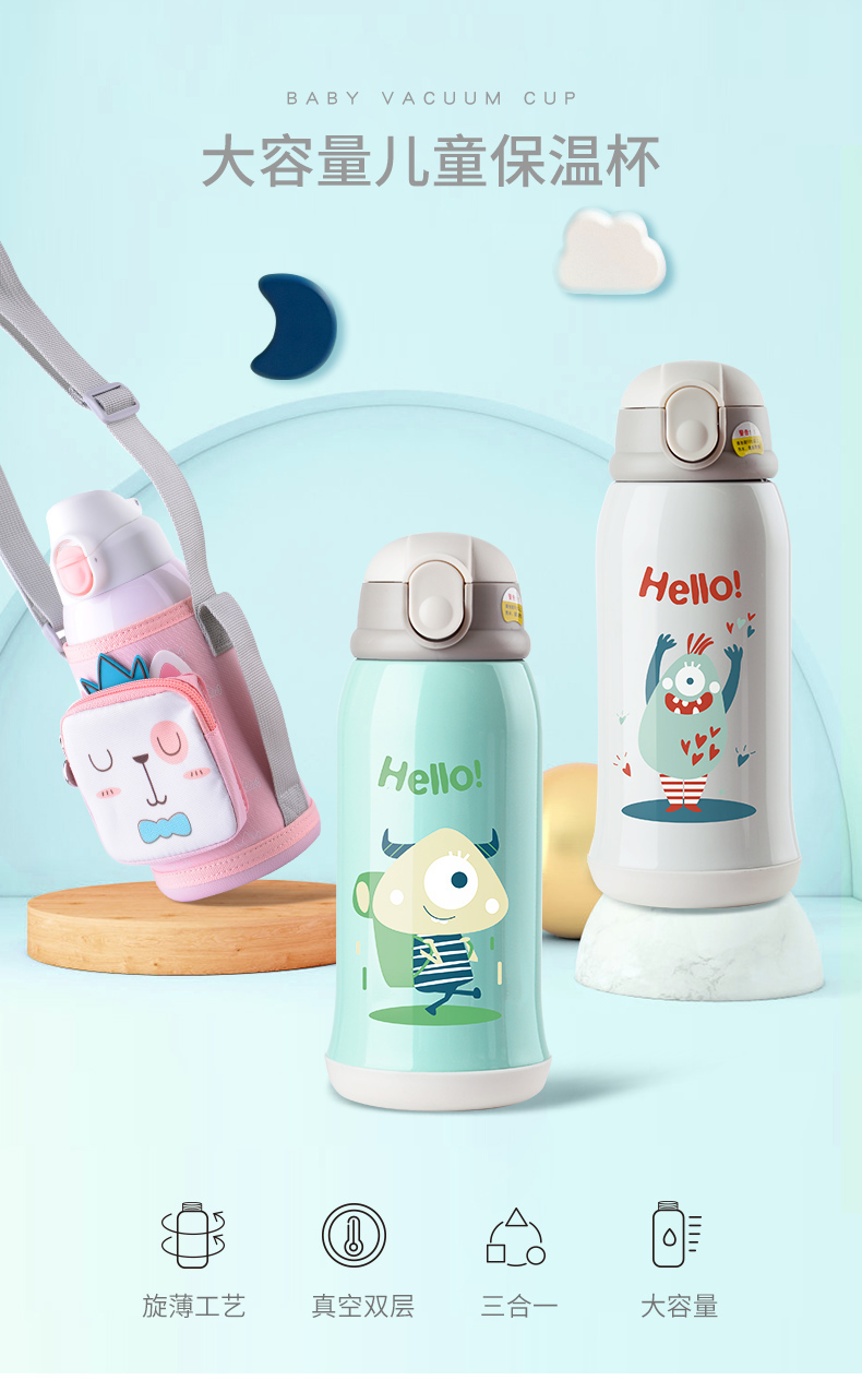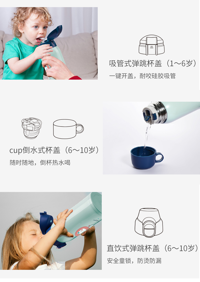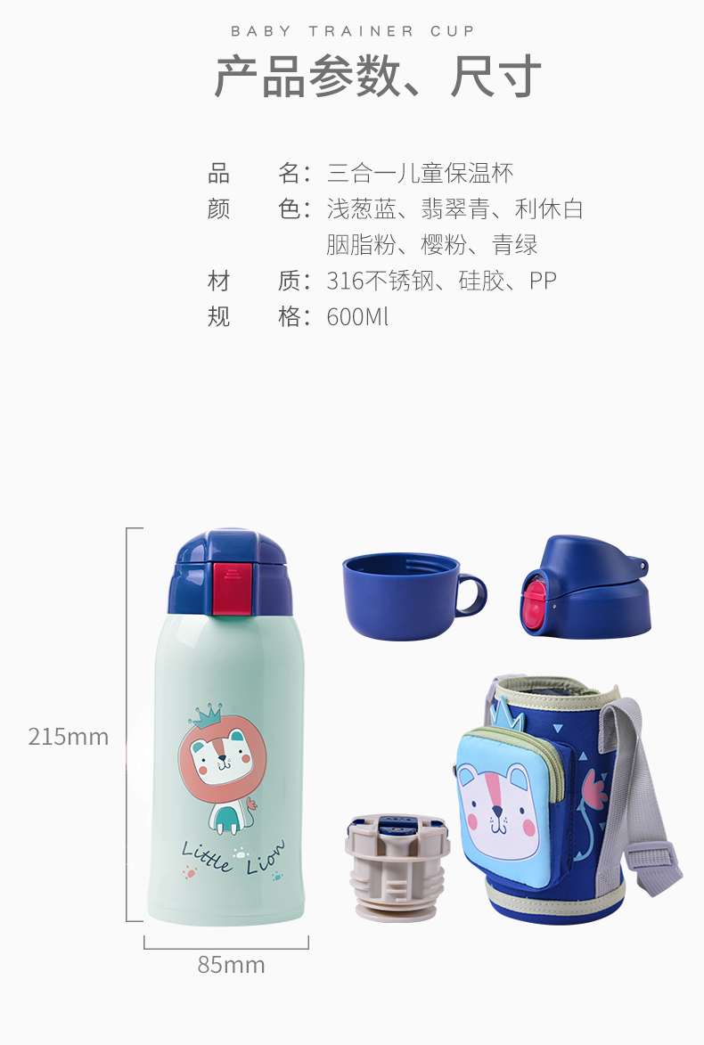 喜凯儿童保温杯316婴儿喝水杯子,男宝宝学饮杯带吸管幼儿园水壶女,三合一设计,满足宝宝不同喝水需求