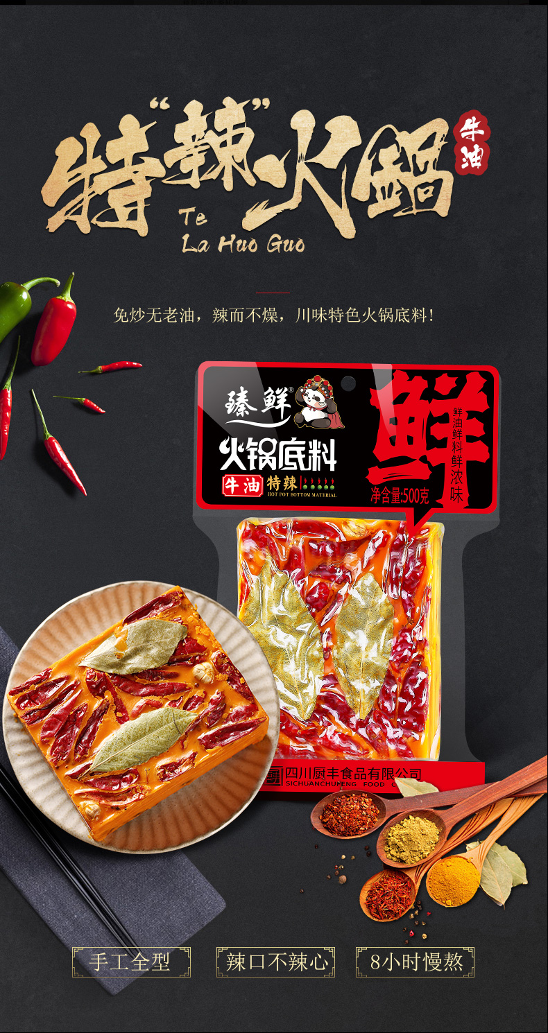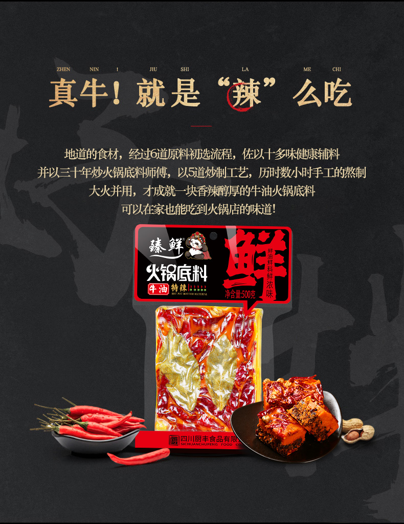 臻鲜四川重庆火锅底料超辣500g手工牛油麻辣烫串串香锅调料老成都