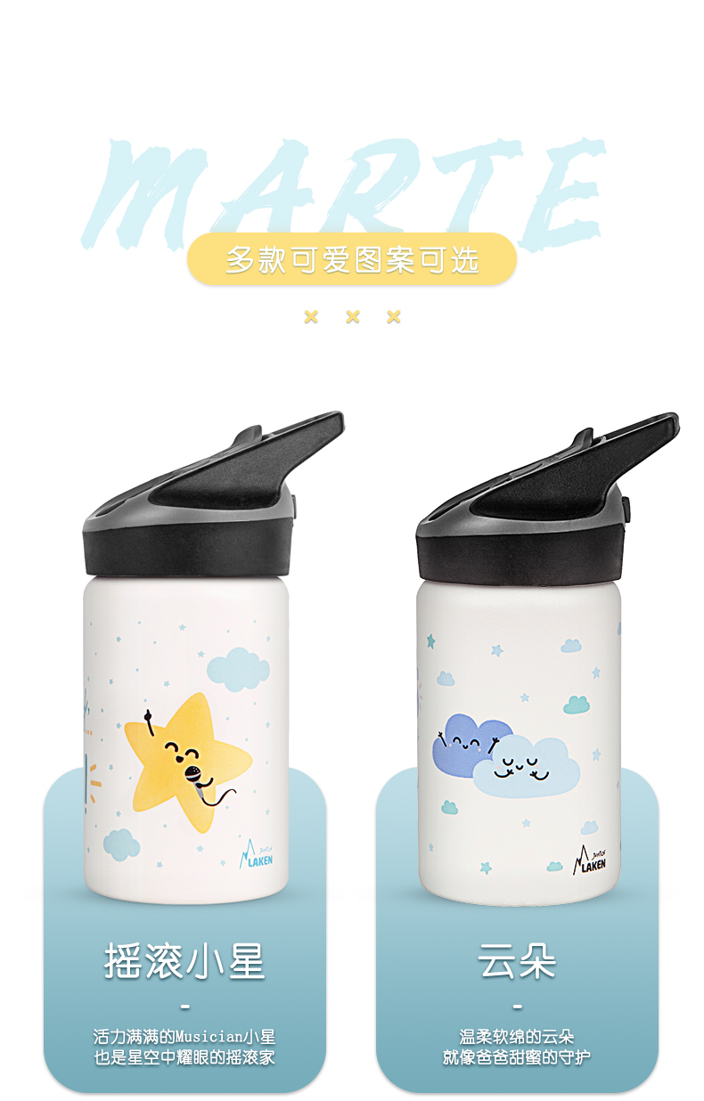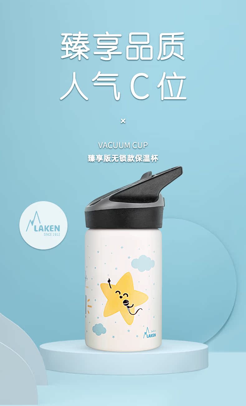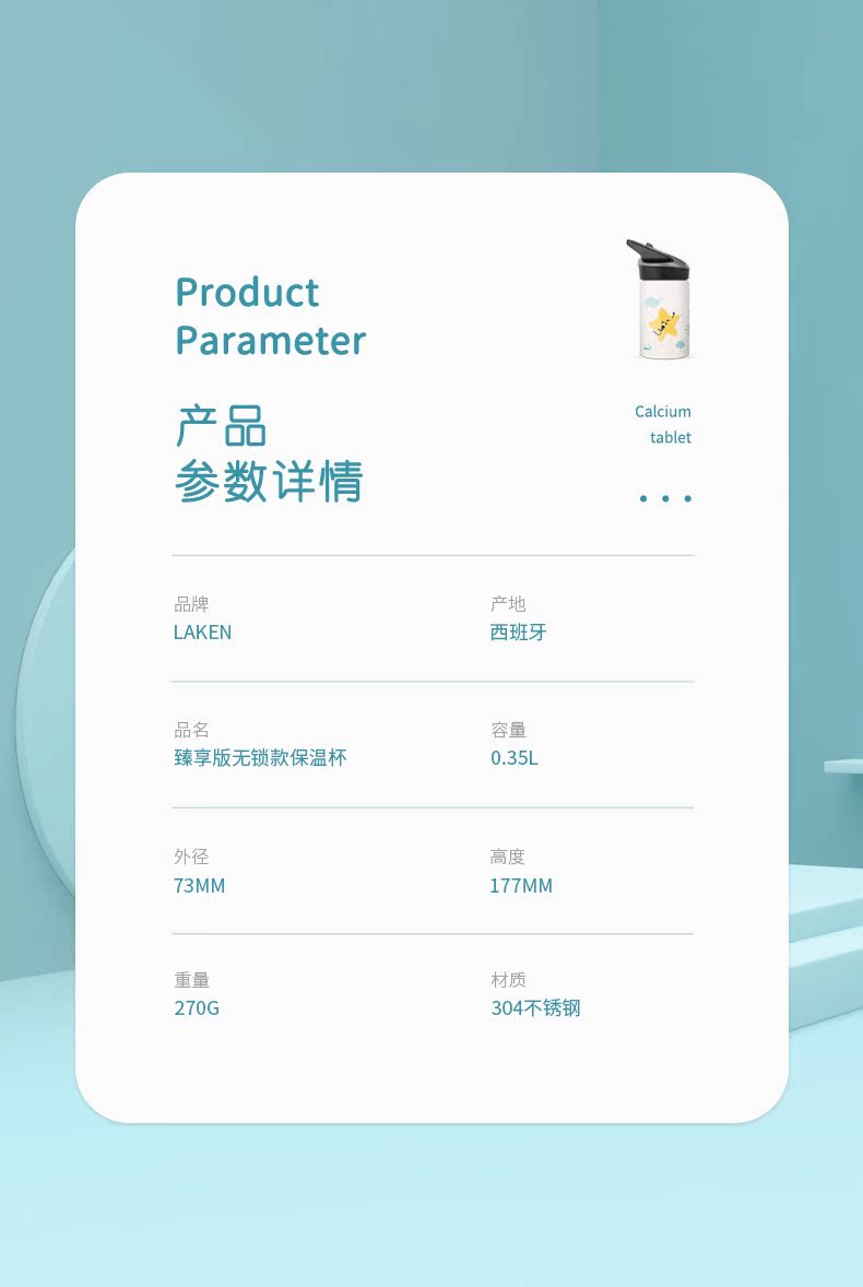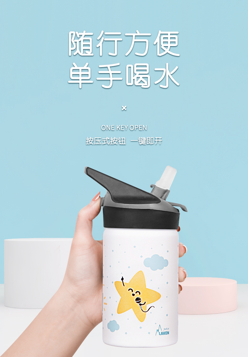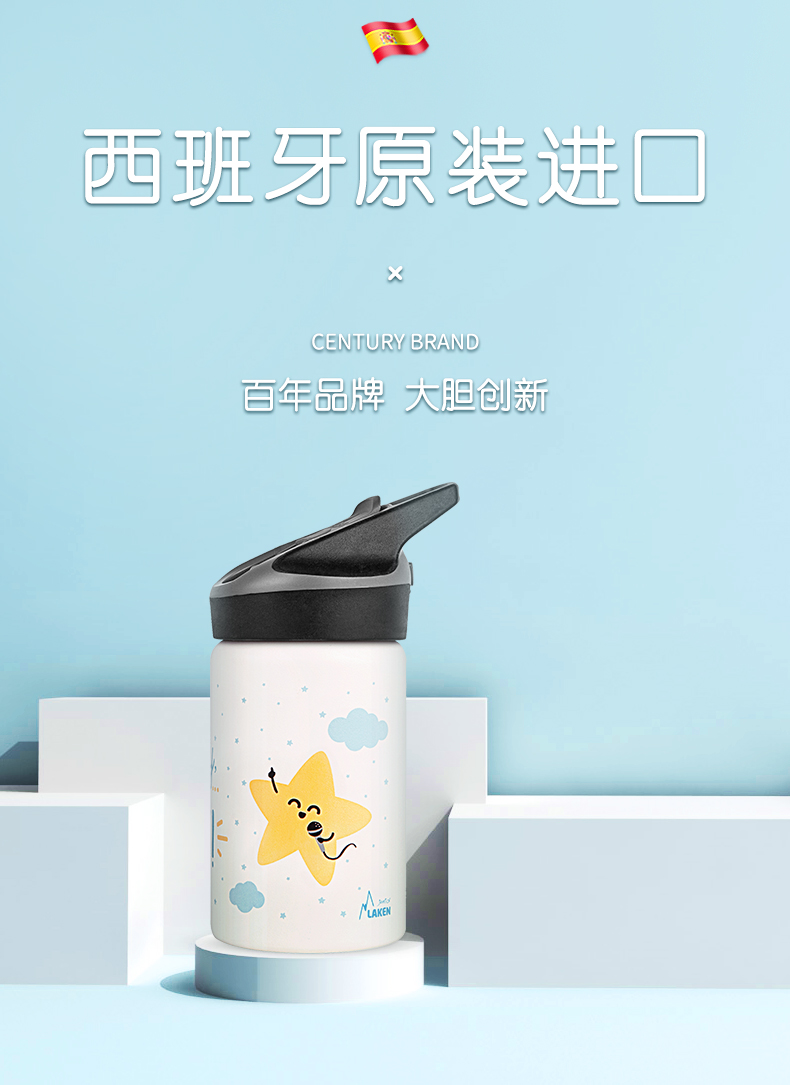 LAKEN拉肯不锈钢便携宝宝保温杯西班牙进口吸管儿童可爱水杯0.35L