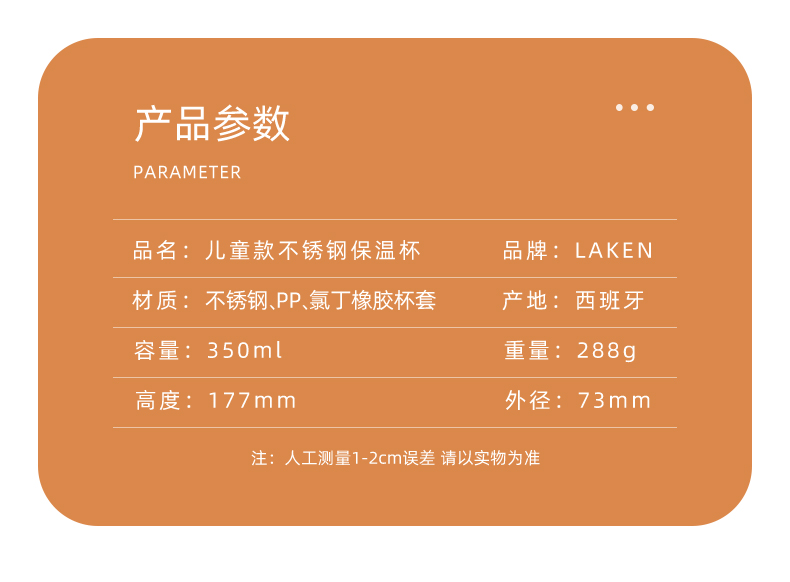 【LAKEN拉肯】爆款全新升级,西班牙出口品质保证,原创设计24时保温,304不锈钢,杯底防滑静音设计,高颜值,大容量,户外便携,从内到外,细致入微