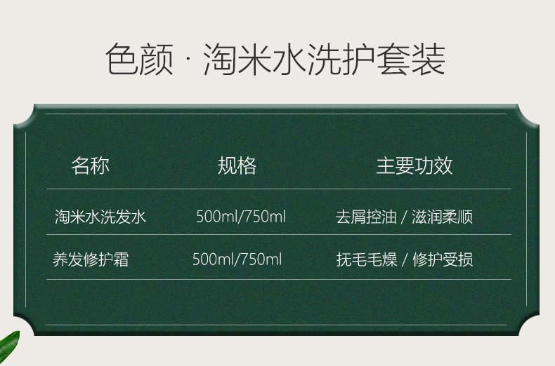 色颜淘米水洗护套装,养头皮,去屑控油,滋润柔顺,抚毛毛躁,修复受损,萃取植物精华,让秀发柔顺光泽!【赠运费险】