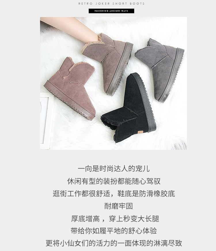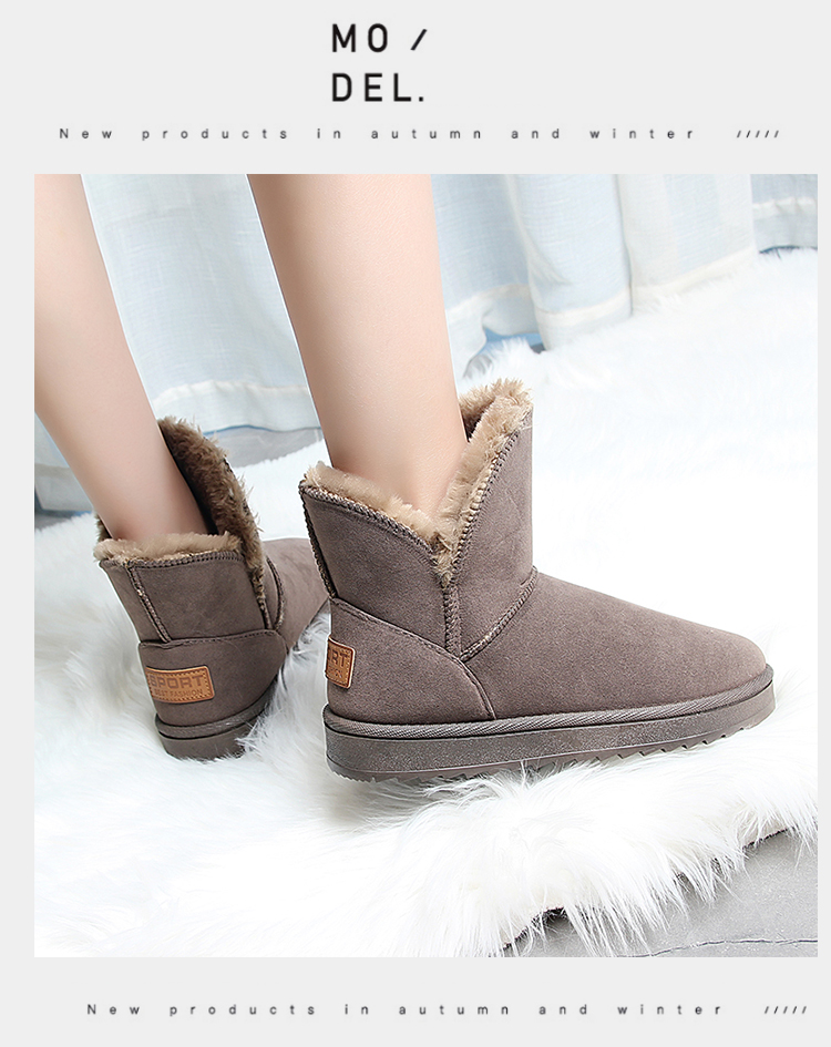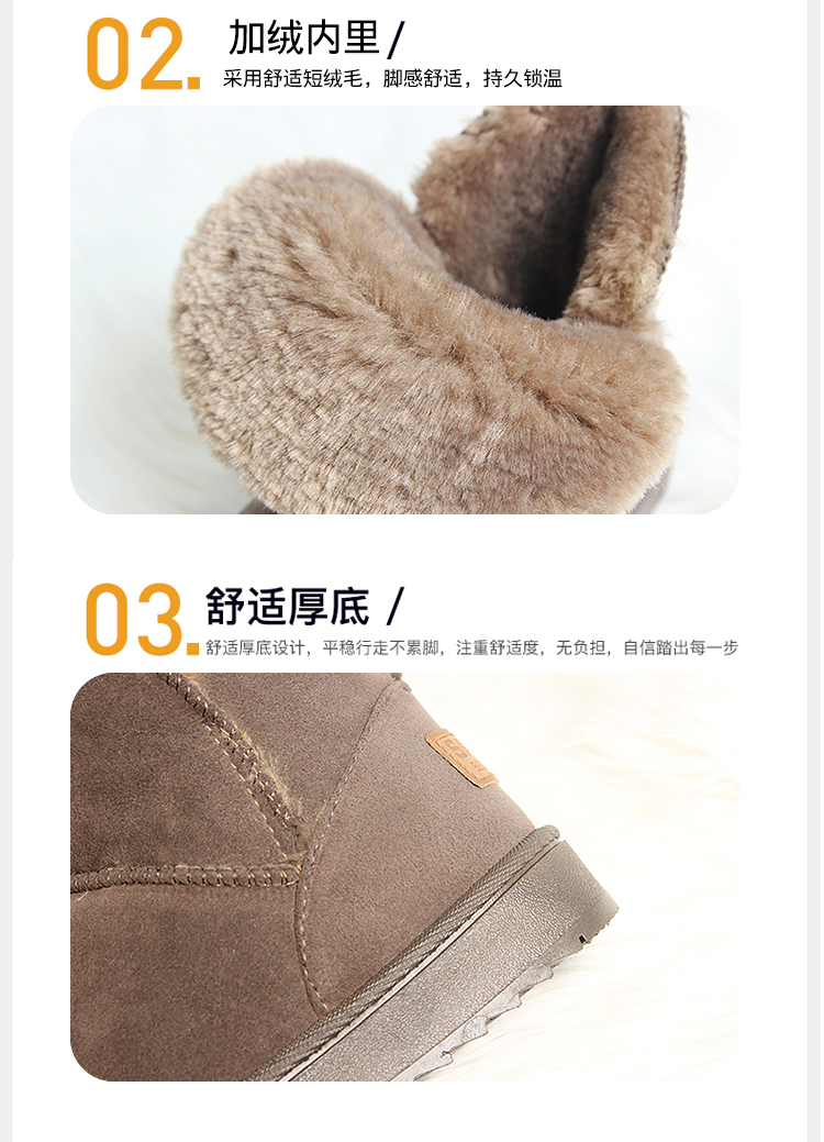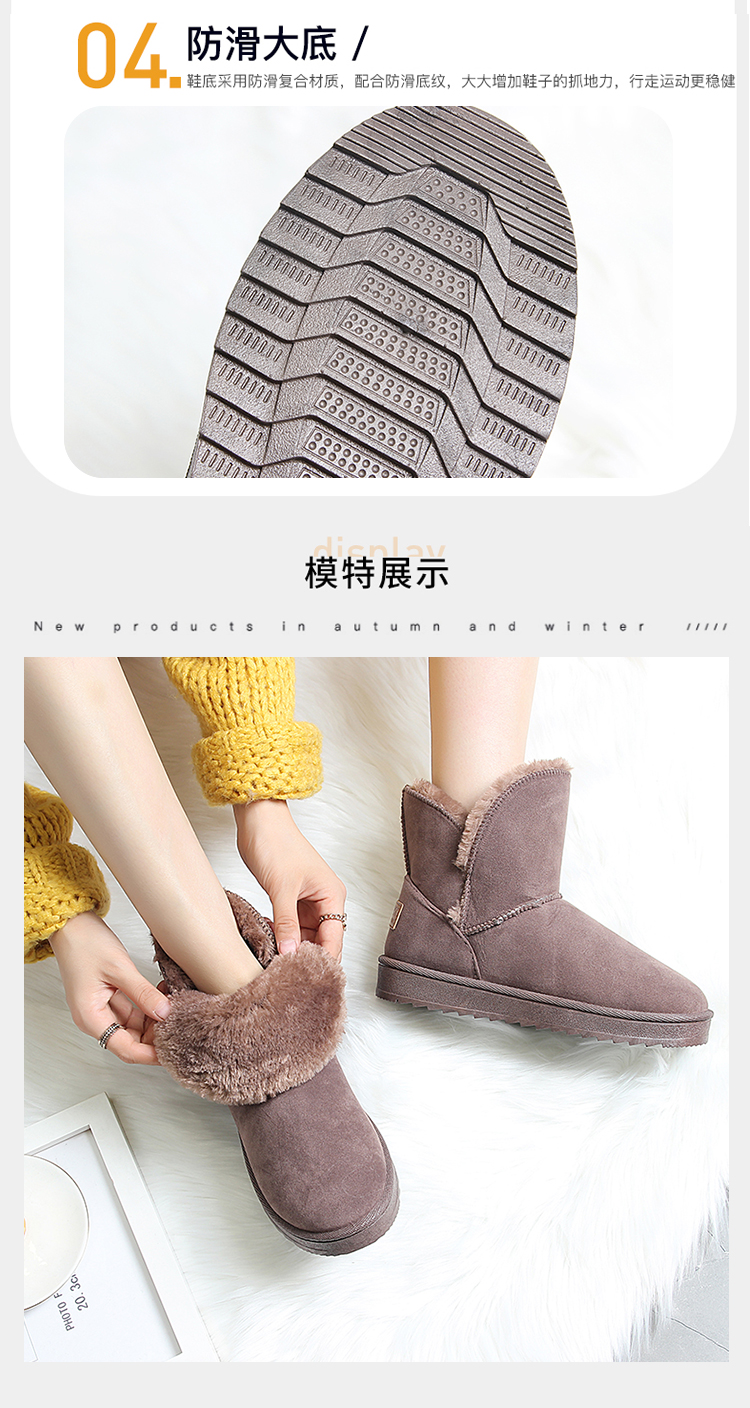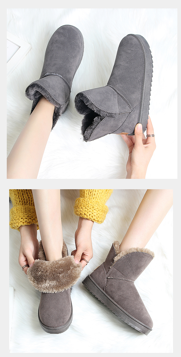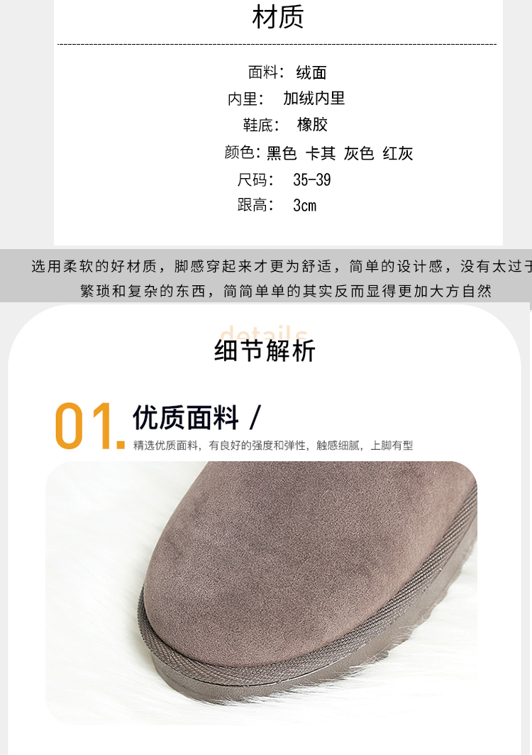 经典圆头雪地靴,一鞋两穿造型很是时尚!磨砂鞋面,透气性,舒适,防滑耐磨。不易掉毛,细腻柔软,抵抗寒冷气候,怎么穿搭都好看。多色可选