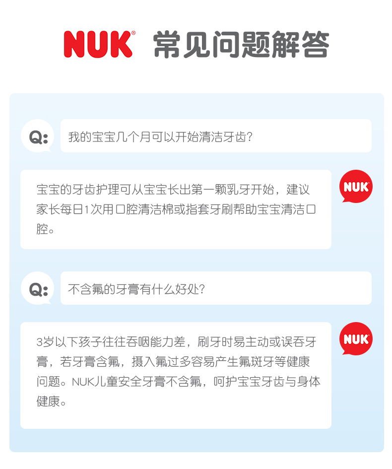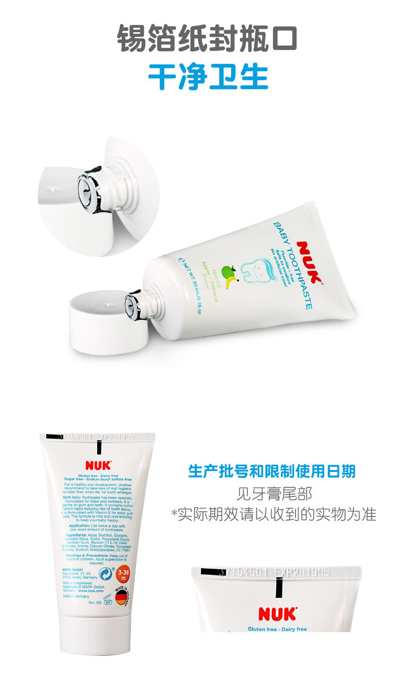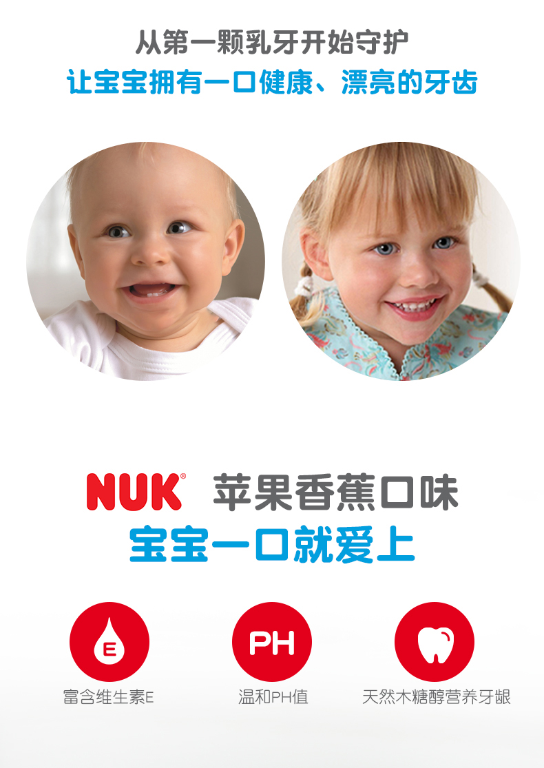 德国NUK进口婴幼儿牙膏宝宝无氟可吞咽食用儿童水果味牙膏0-2