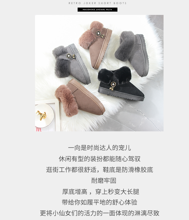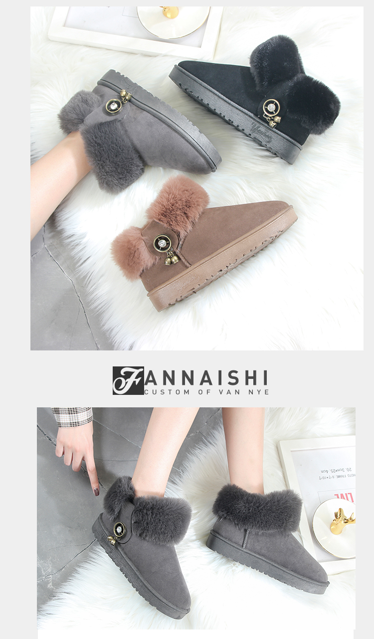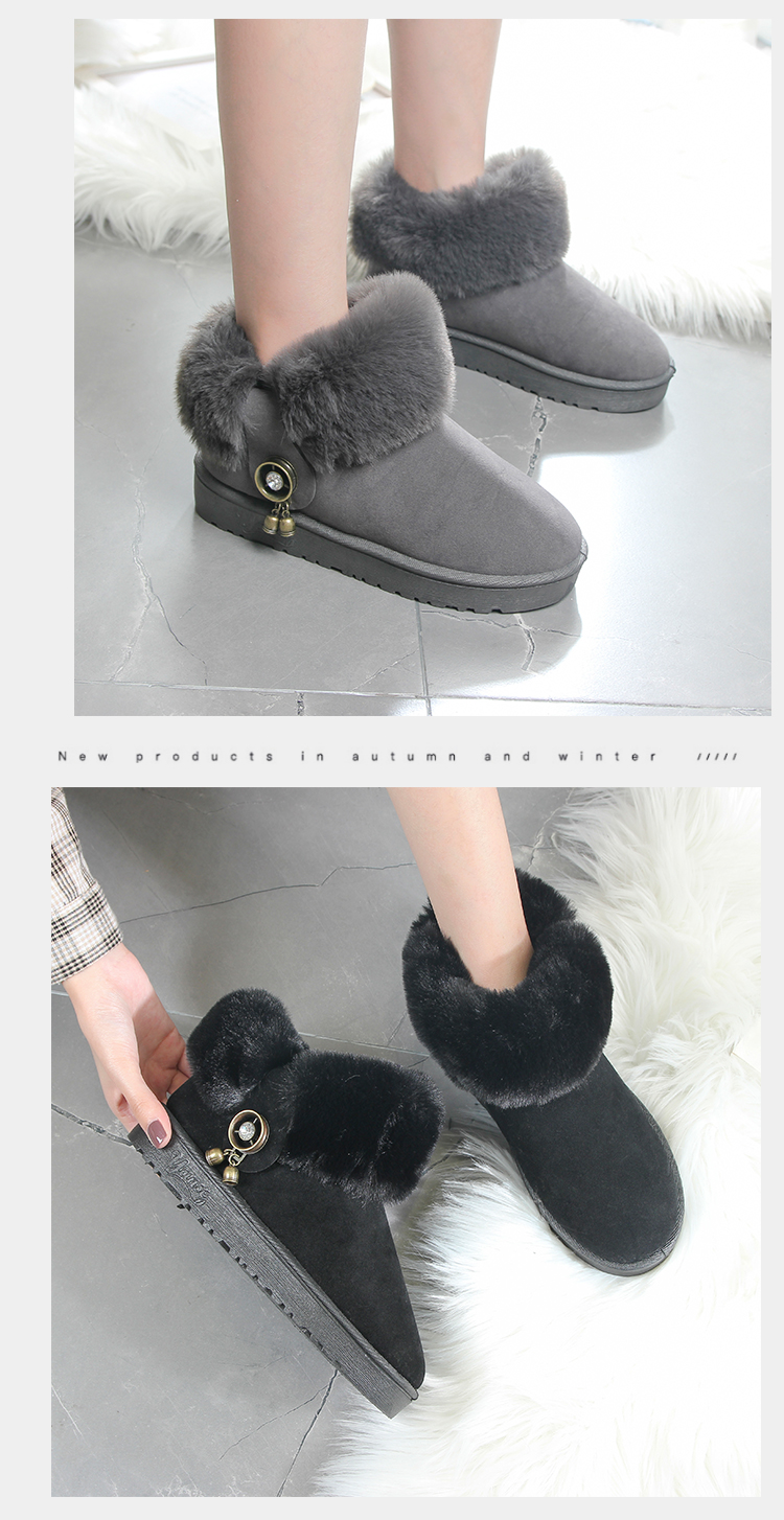 【磨砂反绒~时尚百搭~!】加绒内里,舒适保暖!简约时尚铃铛装饰,上脚有型!穿上秒变小精灵!