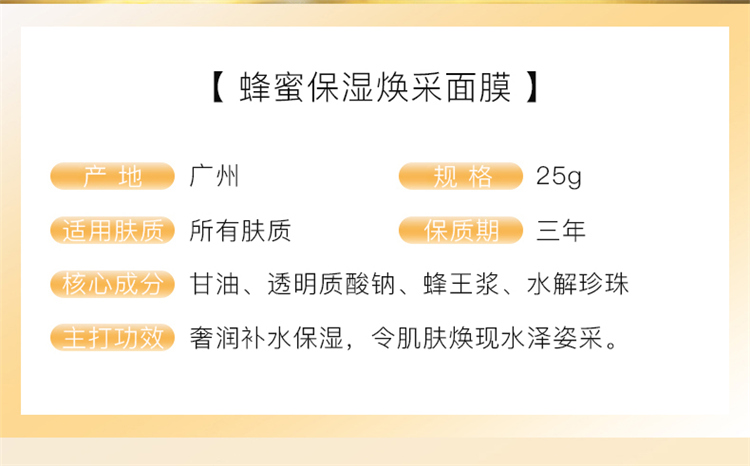 蜂蜜面膜,深层补水面膜,水滋养急救,超级强的镇定补水效果,含有35ML的精华,打造弹力肌肤,彻底解决肌肤缺水问题,轻松养肤baby肌。