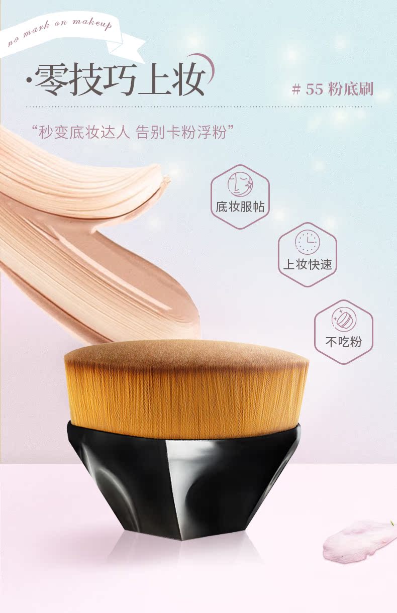 【第二件9.9元】李佳琪推荐,植村秀55号同款花瓣粉底刷,63mm直径达面积,快速上妆省时省力,纤维刷毛,紧密柔软,不掉毛,不吃粉,无刷痕,易清洗,一个月用温水浸泡五分钟后擦干放通风处吹干就可以啦!