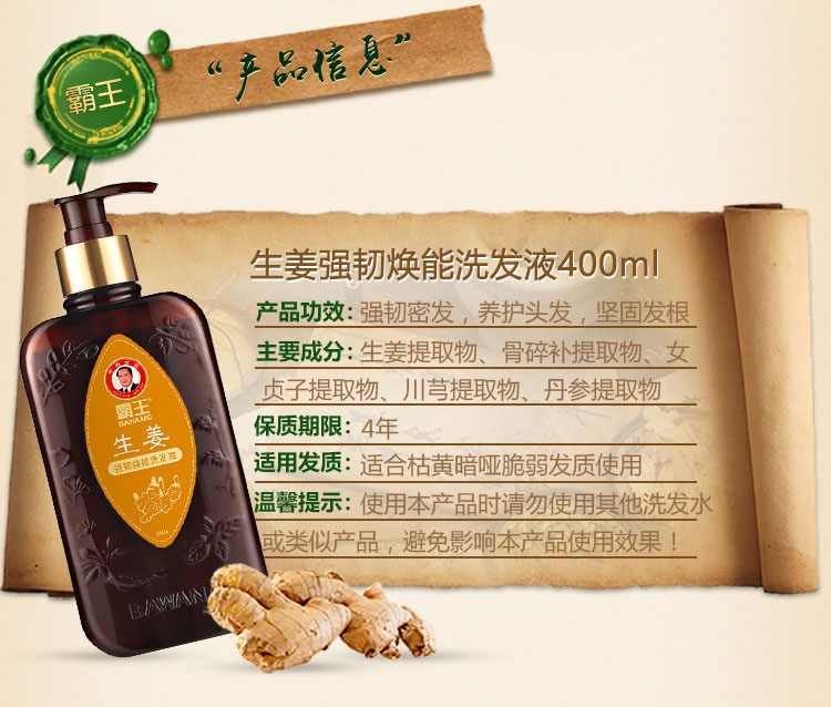 【正品霸王洗发水】采用天然生姜,清爽控油,预防脱发,滋养护发,调理头皮,温和不刺激,坚持使用效果更出众~速抢【赠运费险】