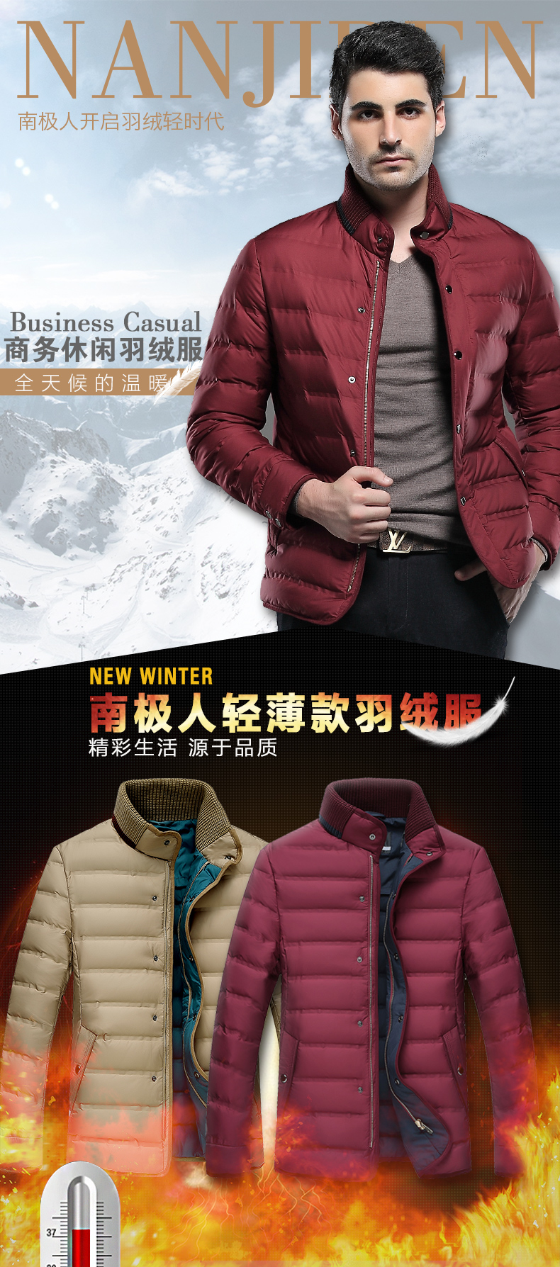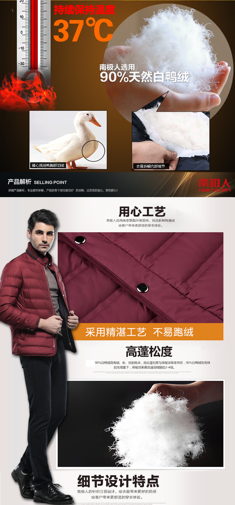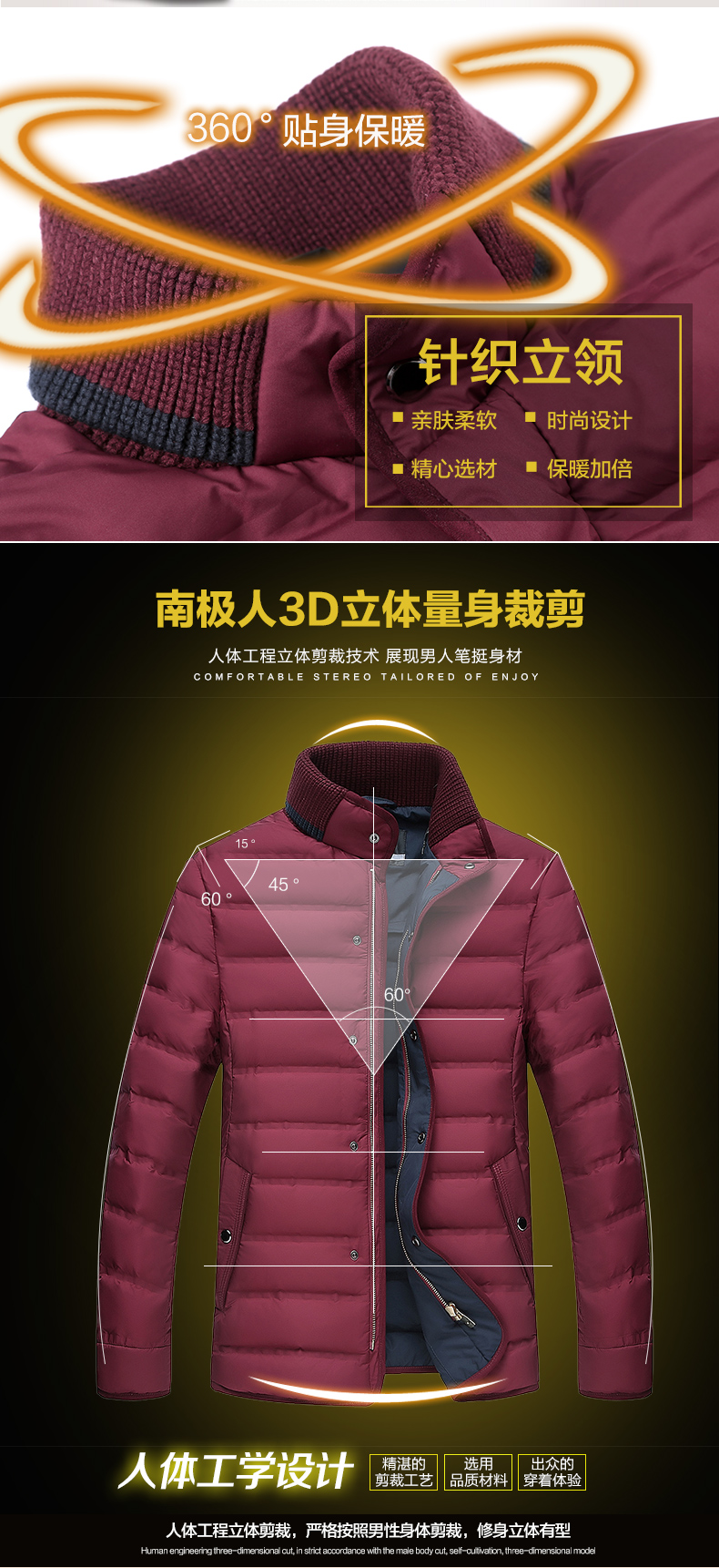 南极人羽绒服男秋冬季新款修身立领轻薄款中青年男装韩版短款外套