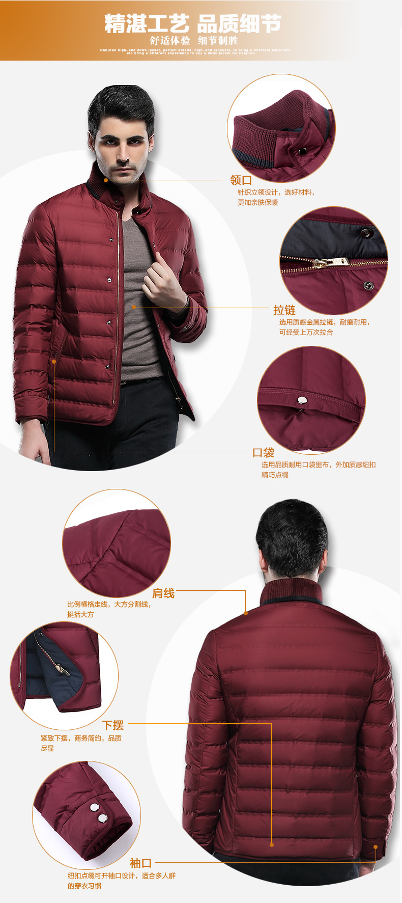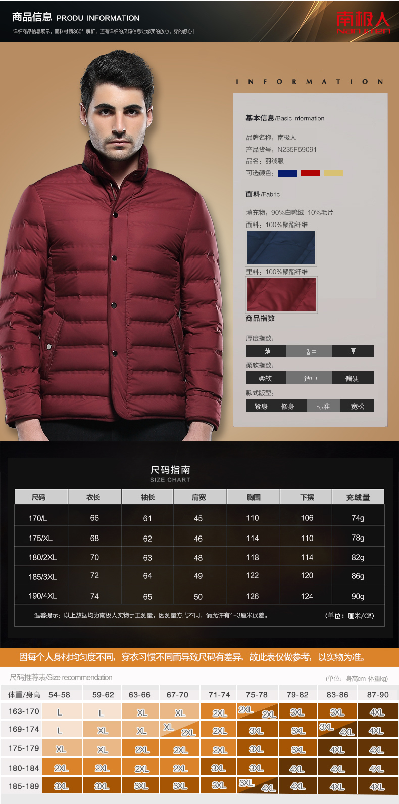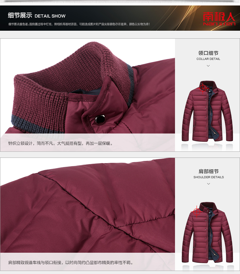 南极人羽绒服男秋冬季新款修身立领轻薄款中青年男装韩版短款外套
