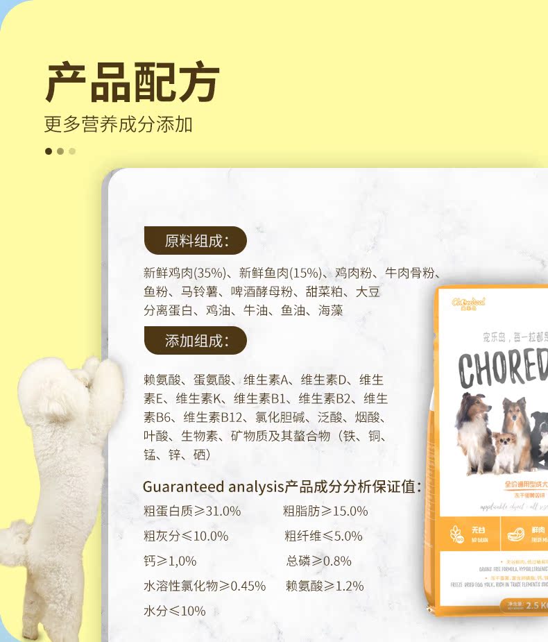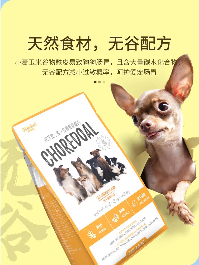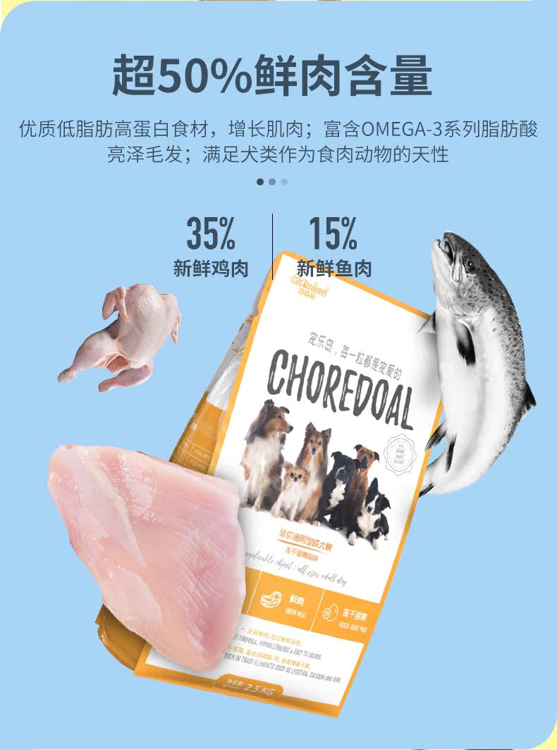 CHOREDOAL宠乐岛 无谷冻干蛋黄双拼犬粮 50%肉含量成犬通用2.5kg