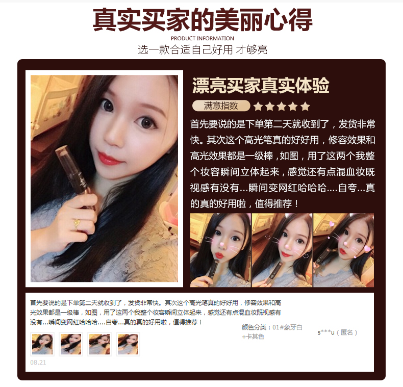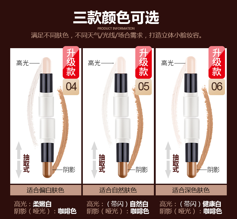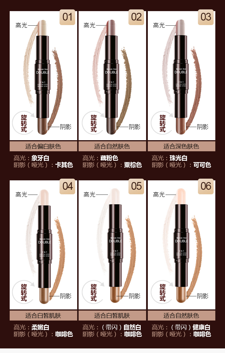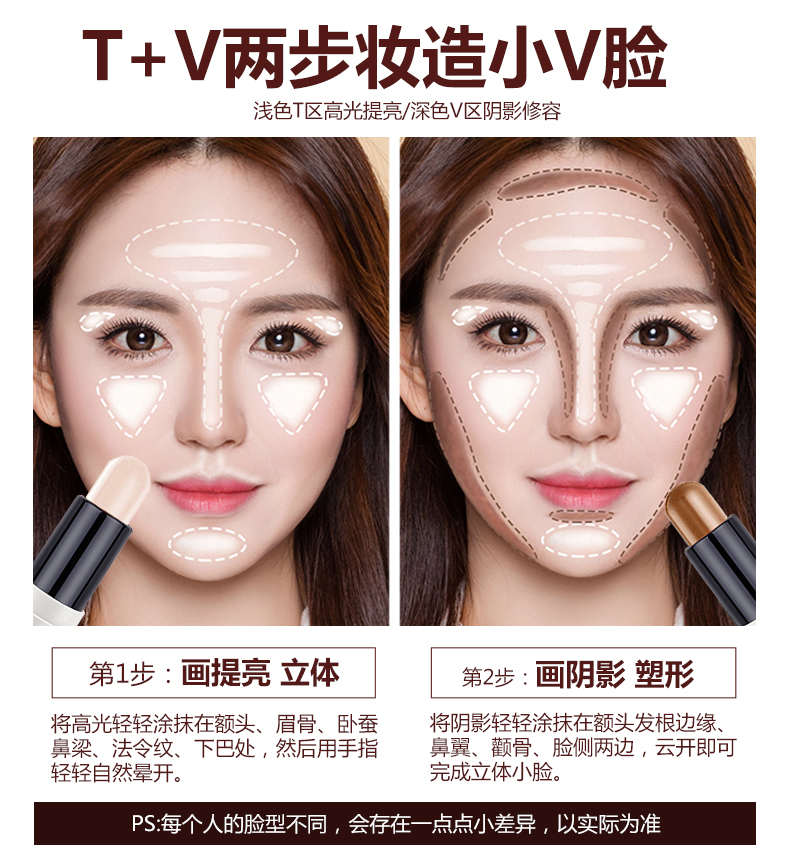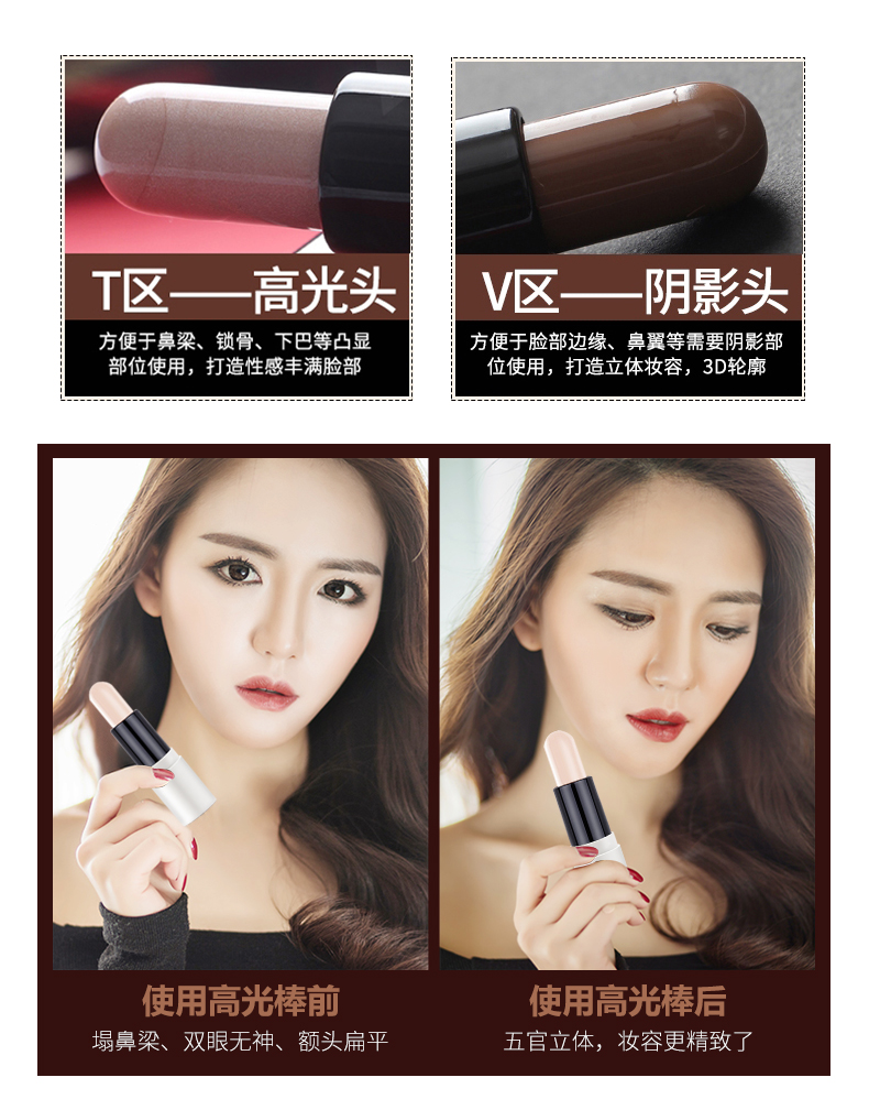 俏美人修容棒双头两用高光卧蚕笔遮瑕V脸粉提亮侧影鼻梁阴影立体