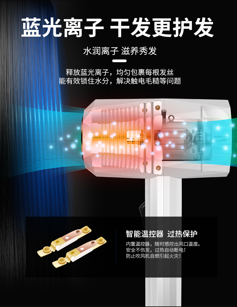 品仕乐家用电吹风机学生宿舍大功率网红风筒发廊静音冷热风不伤发