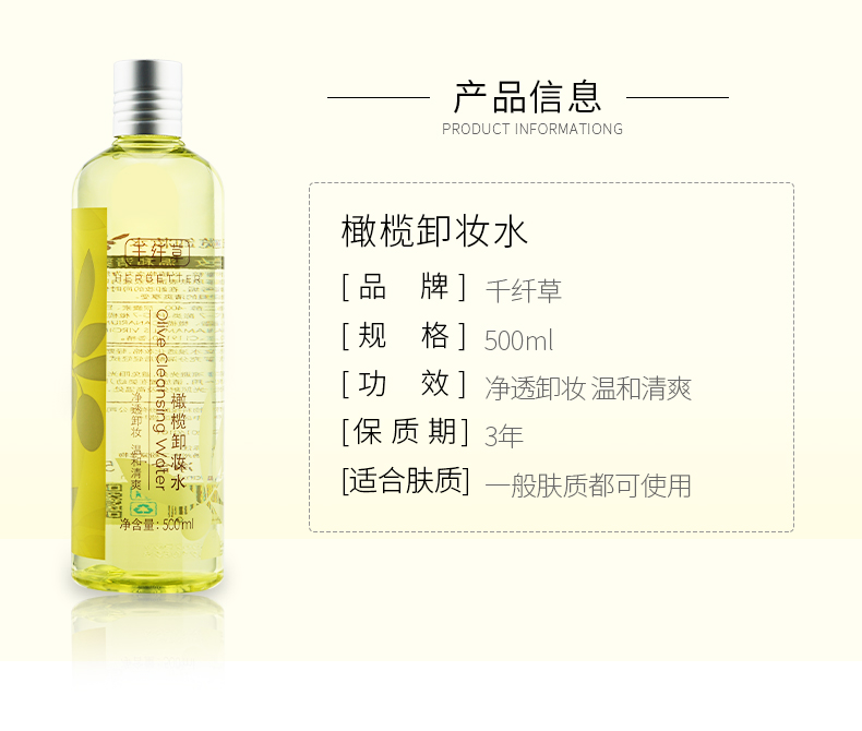 千纤草橄榄卸妆水500ml脸部温和深层清洁脸唇卸妆液乳正品