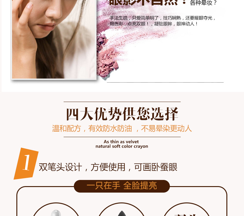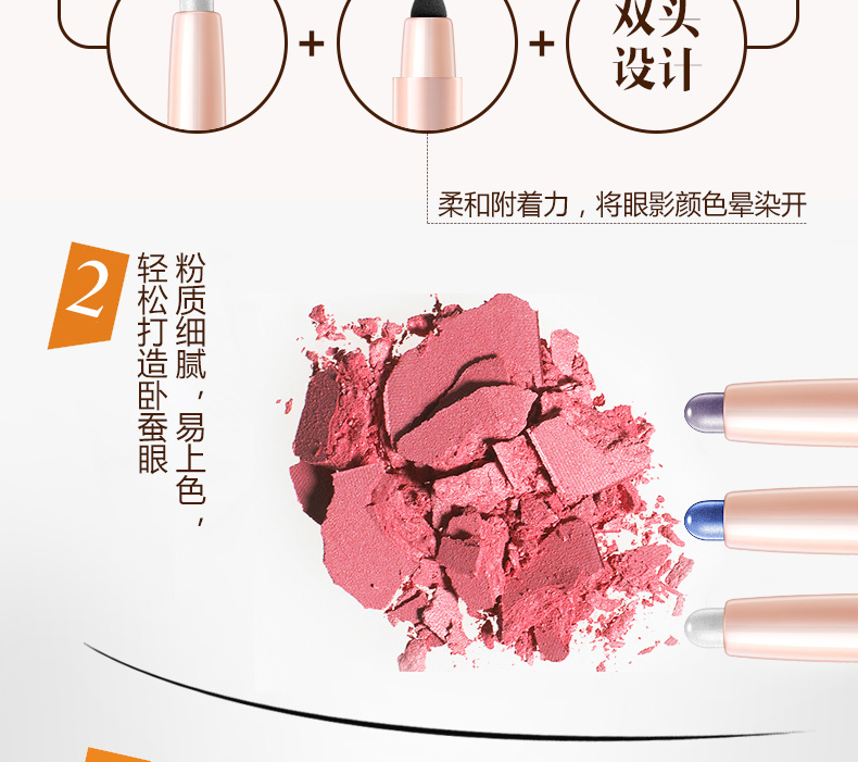 俏美人卧蚕笔双头两用高光棒眼影笔防水不晕染持久哑光珠光眼影棒