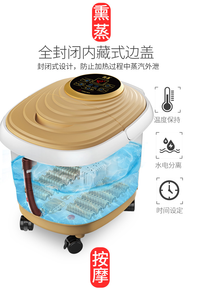 【智能泡脚器!加热按摩!赶走疲劳!】泡脚神器,智能加热按摩足浴盆,恒温加热,封闭设计,防止加热过程中蒸汽外泄,全自动按摩洗脚盆!仿真人足底按摩,舒缓放松,每天泡一泡,让脚步彻底放松!