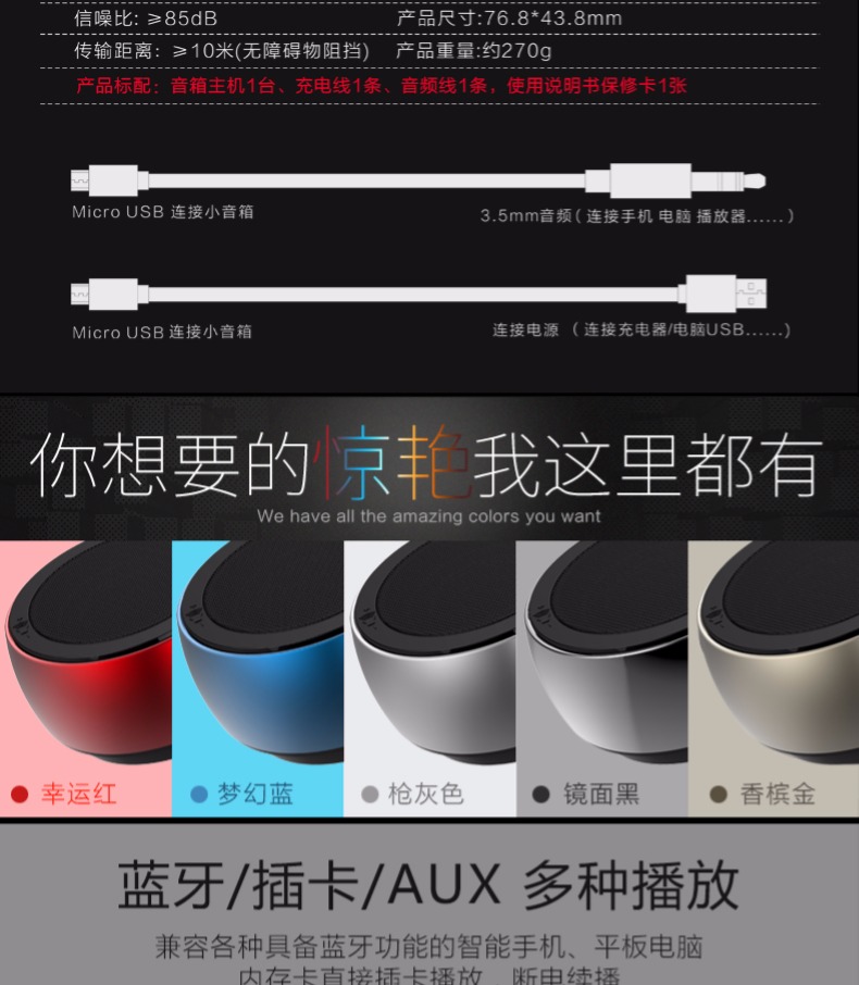 震撼低音,立体音效声临其境!免提通话,高清降噪。全面兼容,多种模式一键切换,小巧更实用,赠运费险