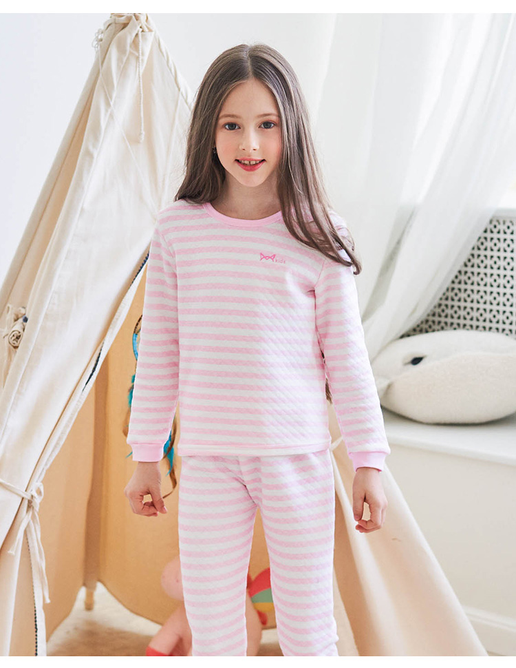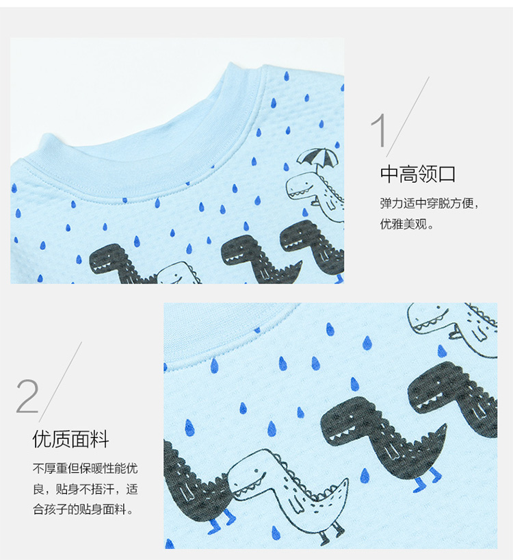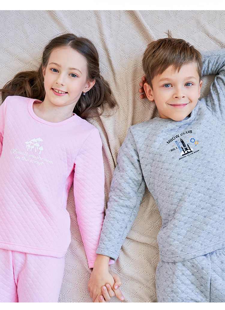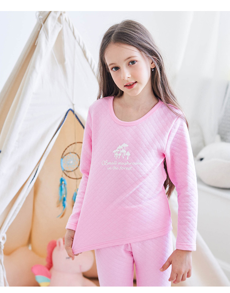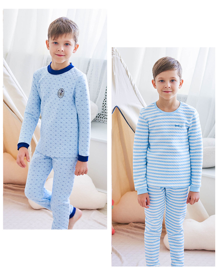 猫人儿童三层保暖内衣套装夹棉男童女孩全棉中大童秋衣秋裤纯棉