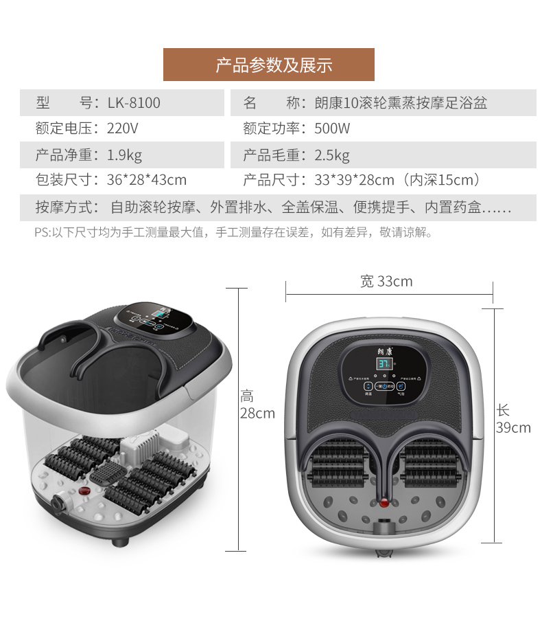 朗康足浴盆全自动加热恒温洗脚盆按摩泡脚桶吴昕同款家用泡脚神器