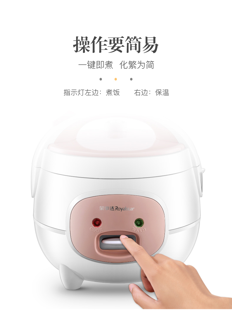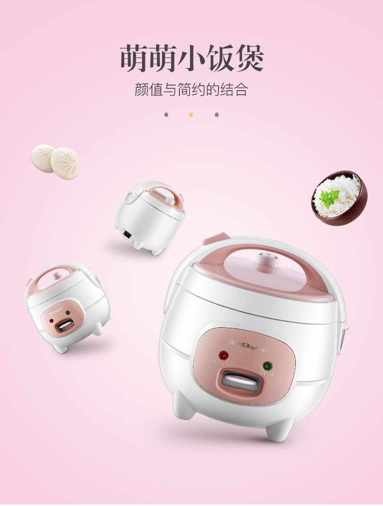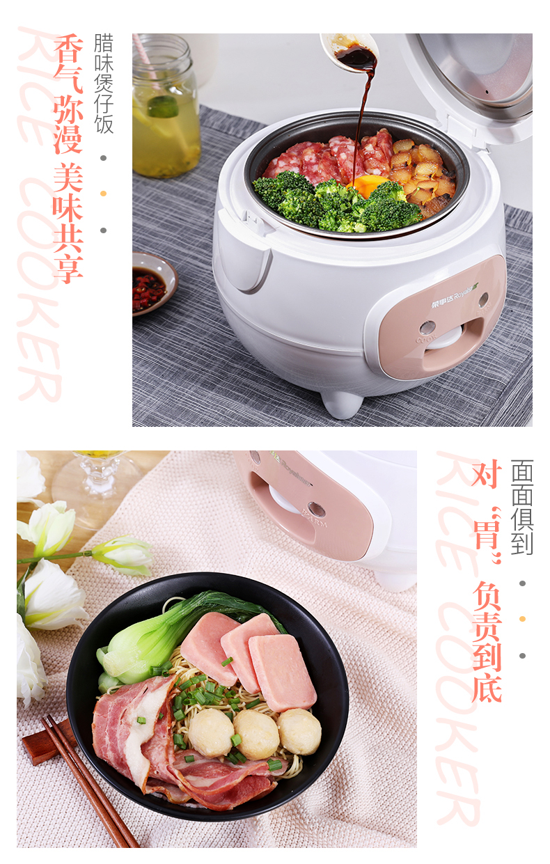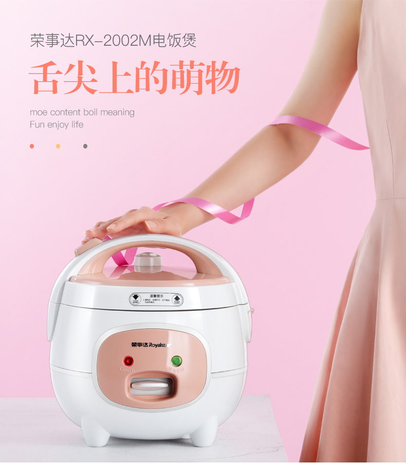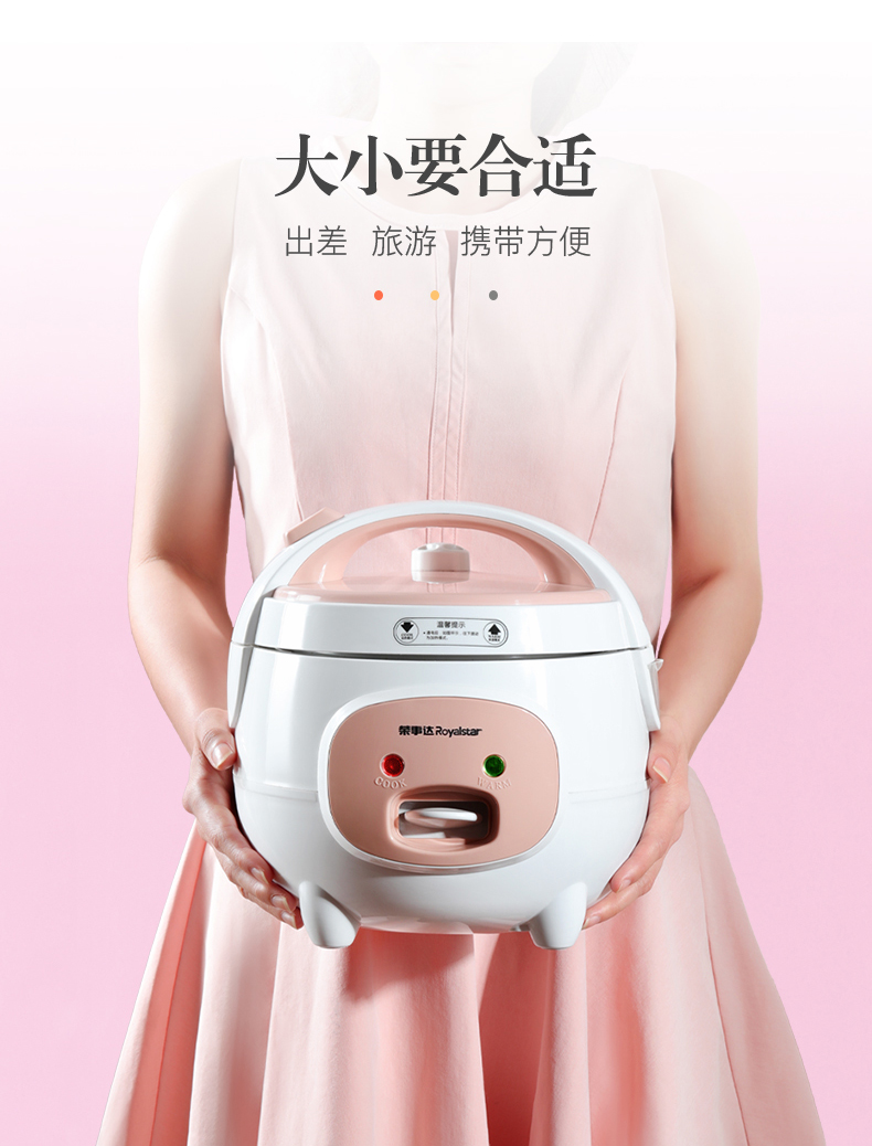 荣事达迷你电饭煲,2升小容量,宿舍,旅游,居家都可用的小功率电饭煲,小巧方便携带,黑晶不沾内胆,干净易洗,简单易操作。赠运险费。
