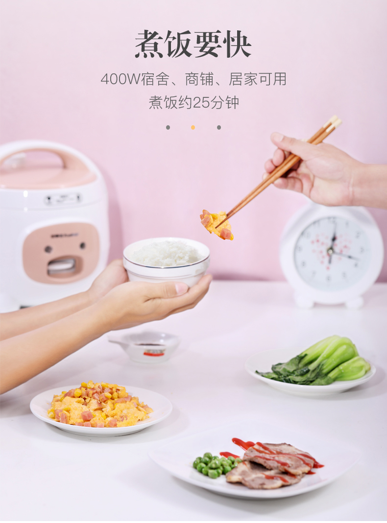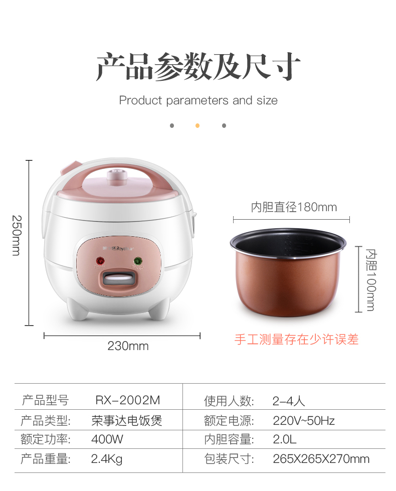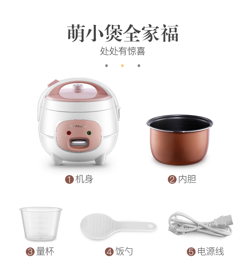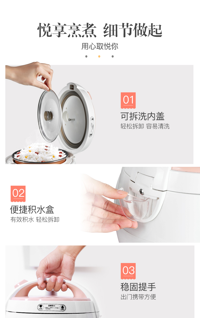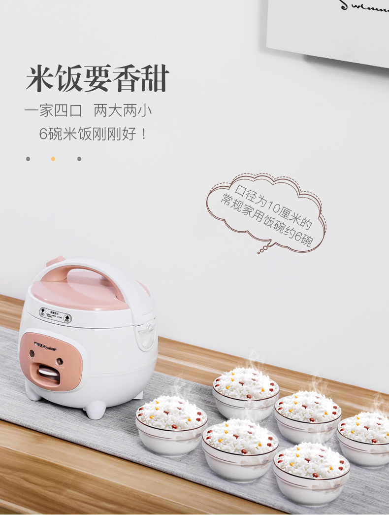 荣事达迷你电饭煲,2升小容量,宿舍,旅游,居家都可用的小功率电饭煲,小巧方便携带,黑晶不沾内胆,干净易洗,简单易操作。赠运险费。