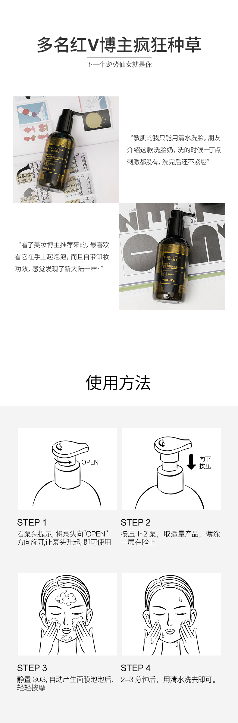 【拍两件】限时买1送1送同款,真正手慢无!朴尔因子天猫旗舰店,品质无忧!脸新革命,体验温和洁面,洗卸合一,既是洗面奶也是卸妆液,30秒自动起泡黑科技,天然氨基酸、椰油、甘油添加,亲肤保湿,