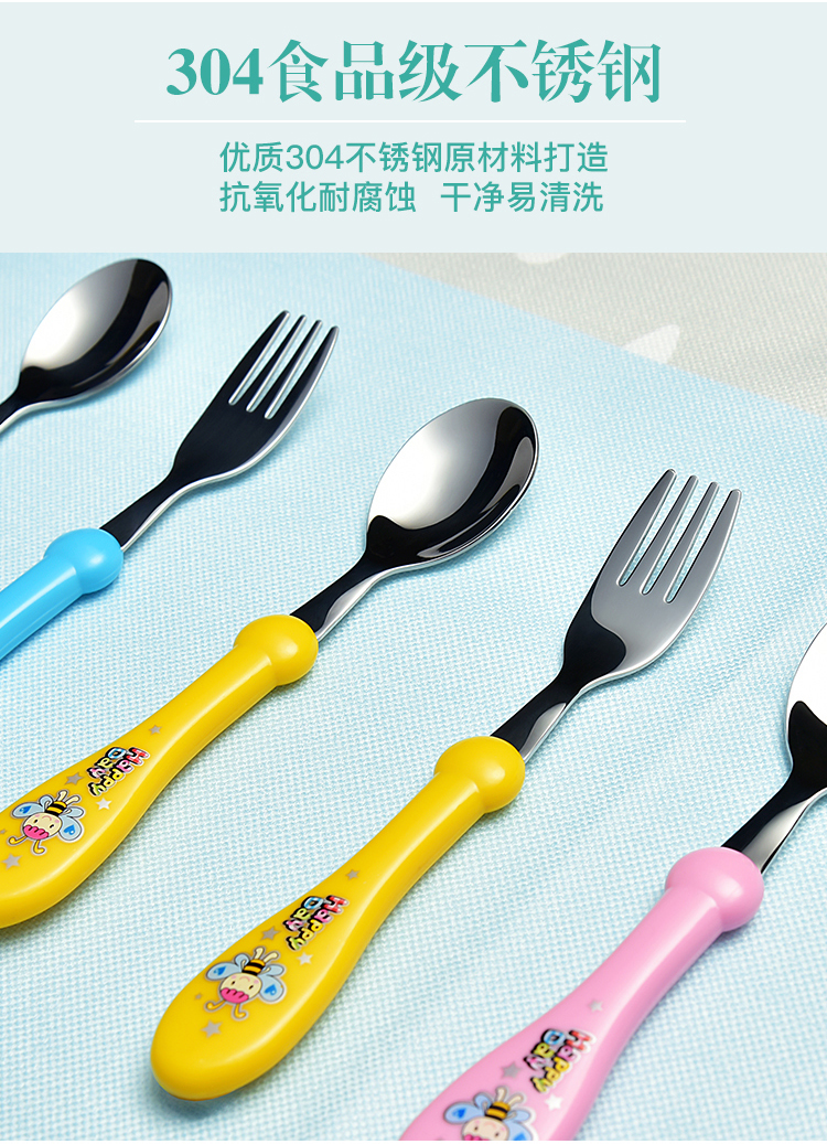 儿童不锈钢训练筷子小孩家用3-4岁宝宝学习练习筷勺餐具套装男孩
