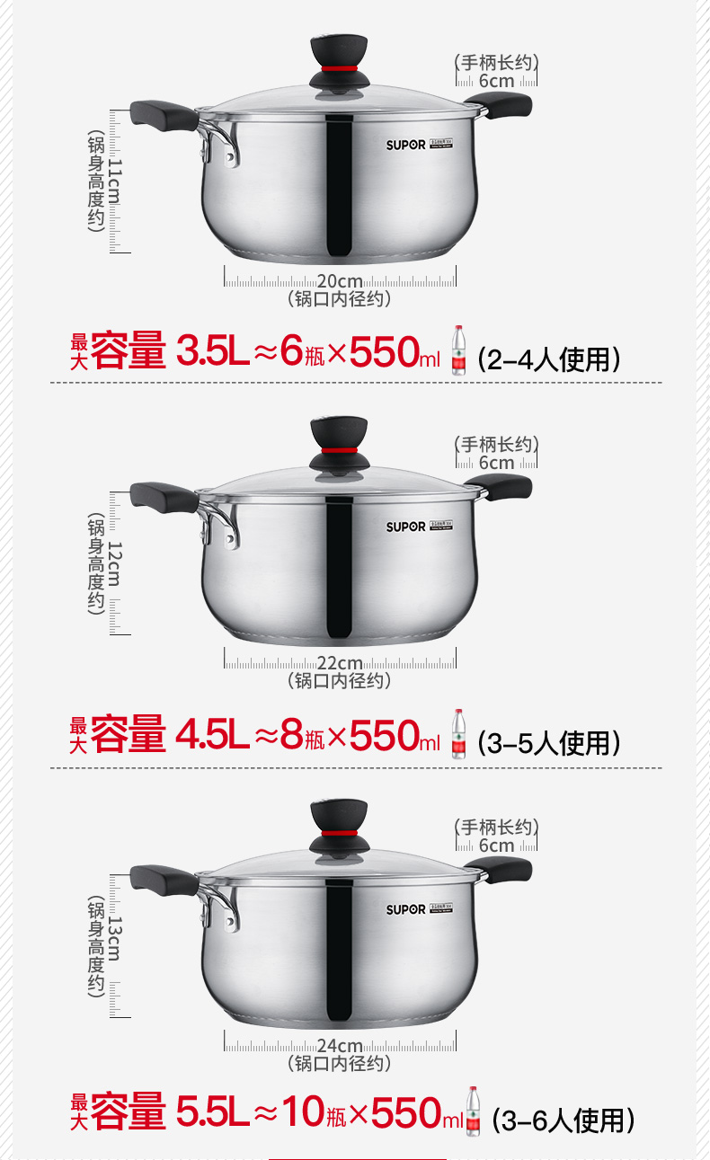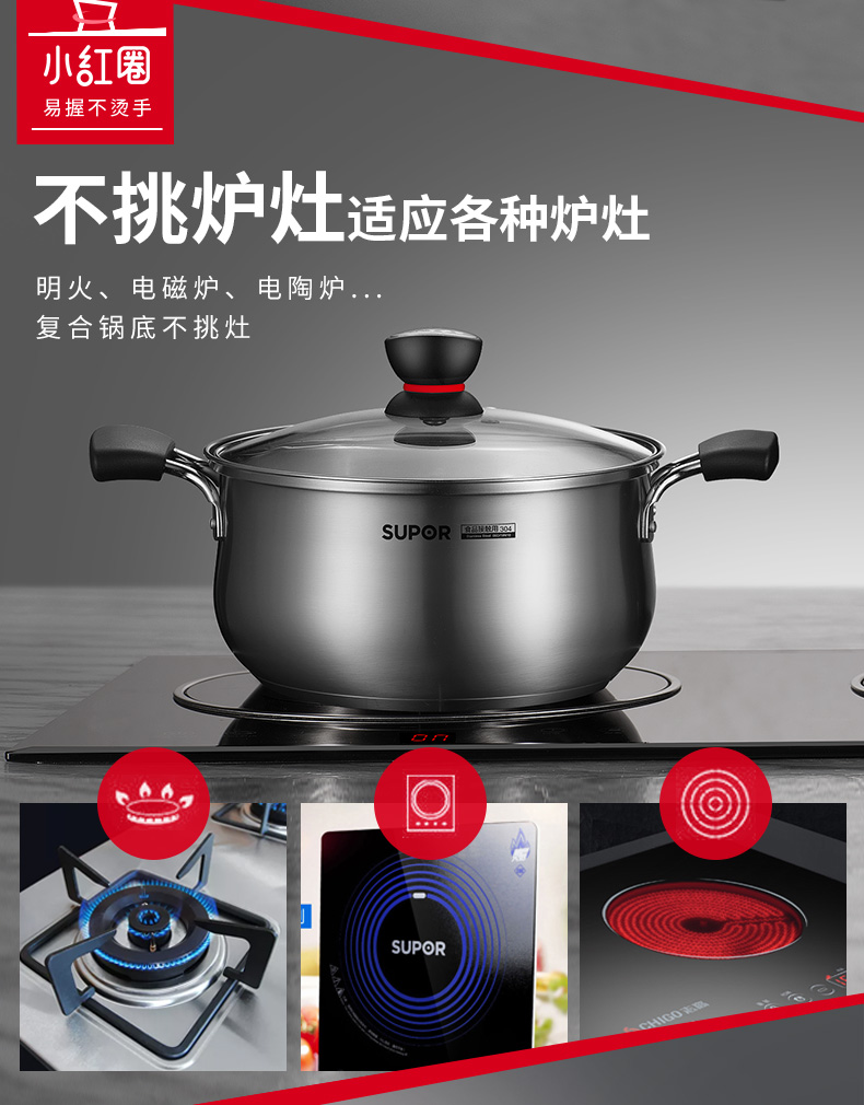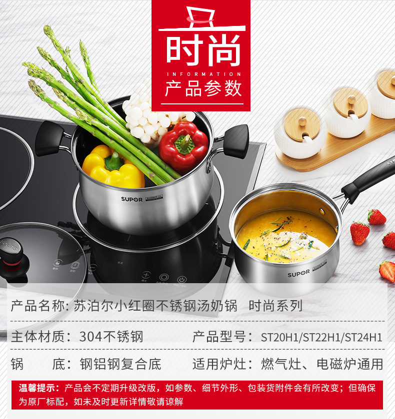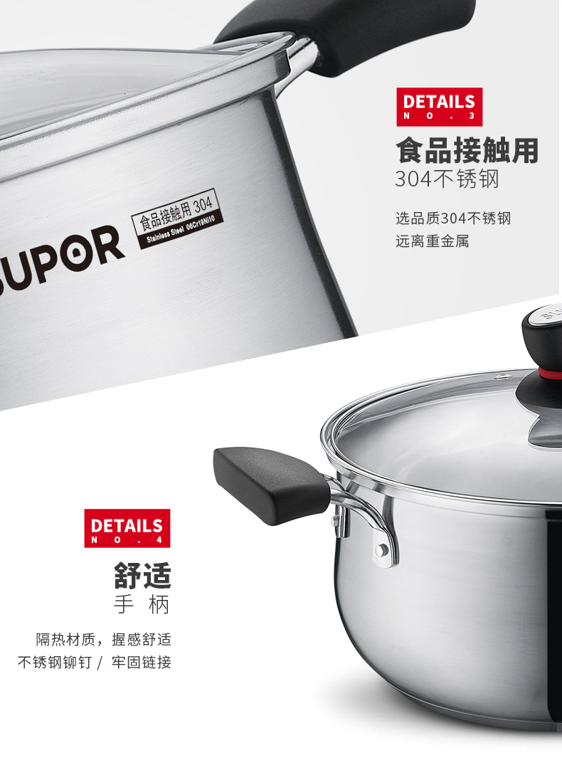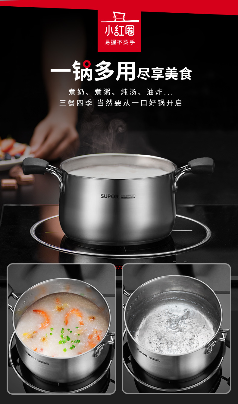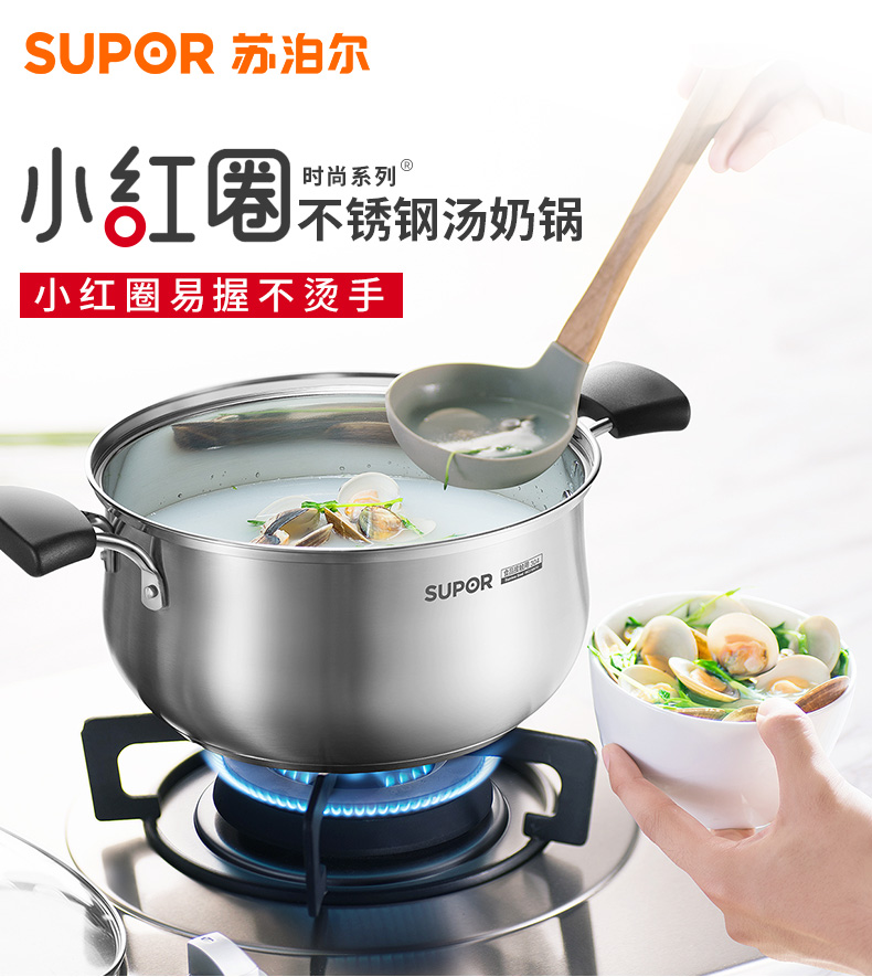 苏泊尔汤锅304不锈钢加厚家用奶锅煮粥锅煮锅锅具燃气电磁炉炖锅