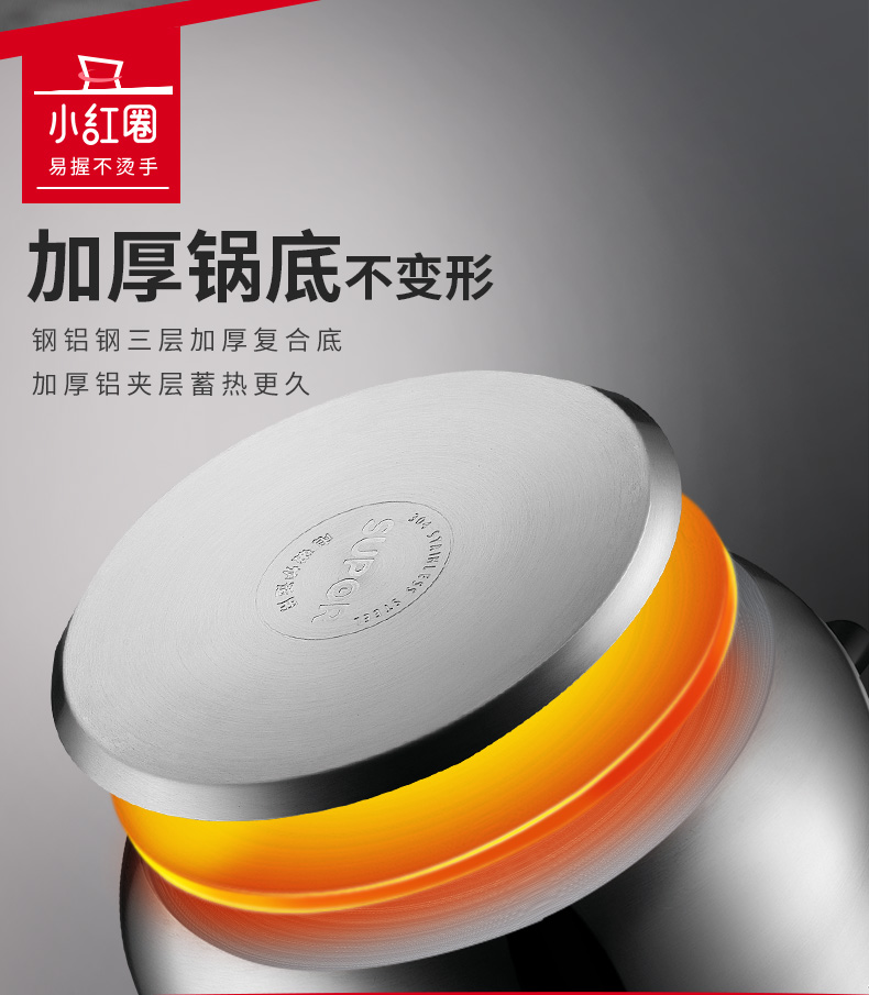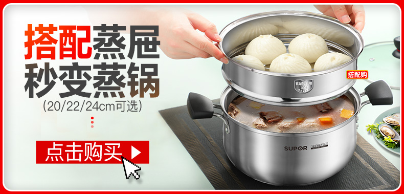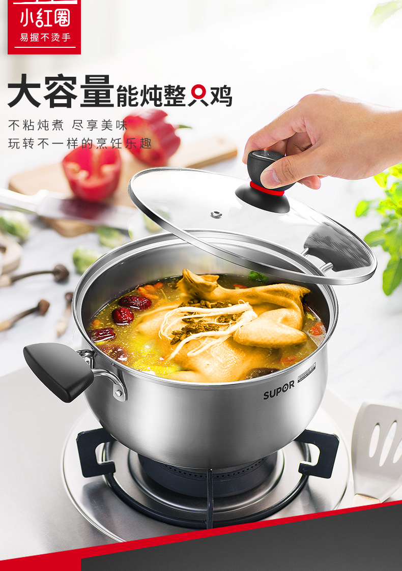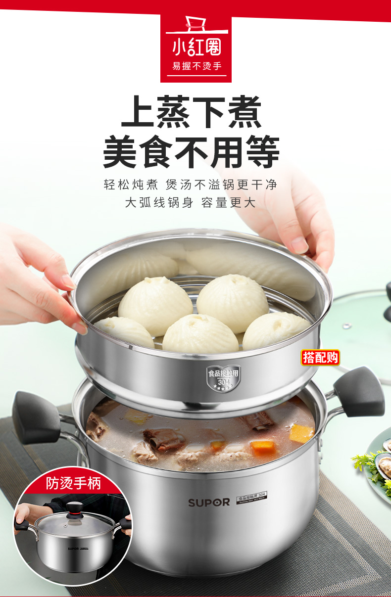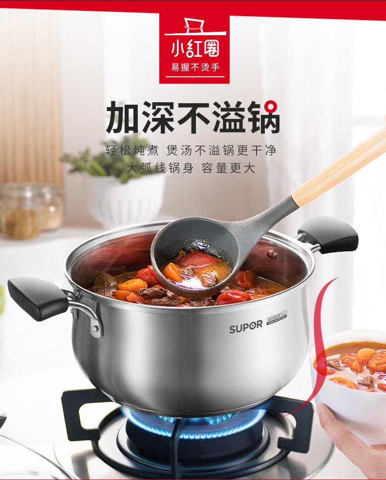 【送汤勺】厨房必备的汤锅哦,苏泊尔线下专柜品牌!!加厚304不锈钢材质,环保耐用,多效兼容,蒸煮焖炖,样样精通~想吃什么吃什么,营养美味一锅出~赶紧抢!【赠运费险】