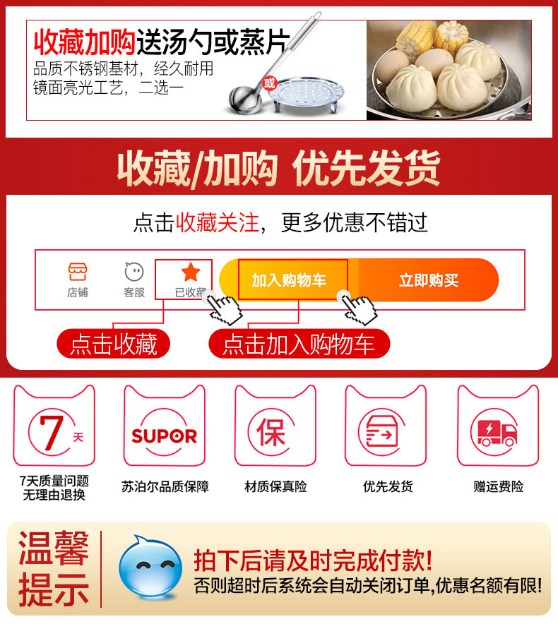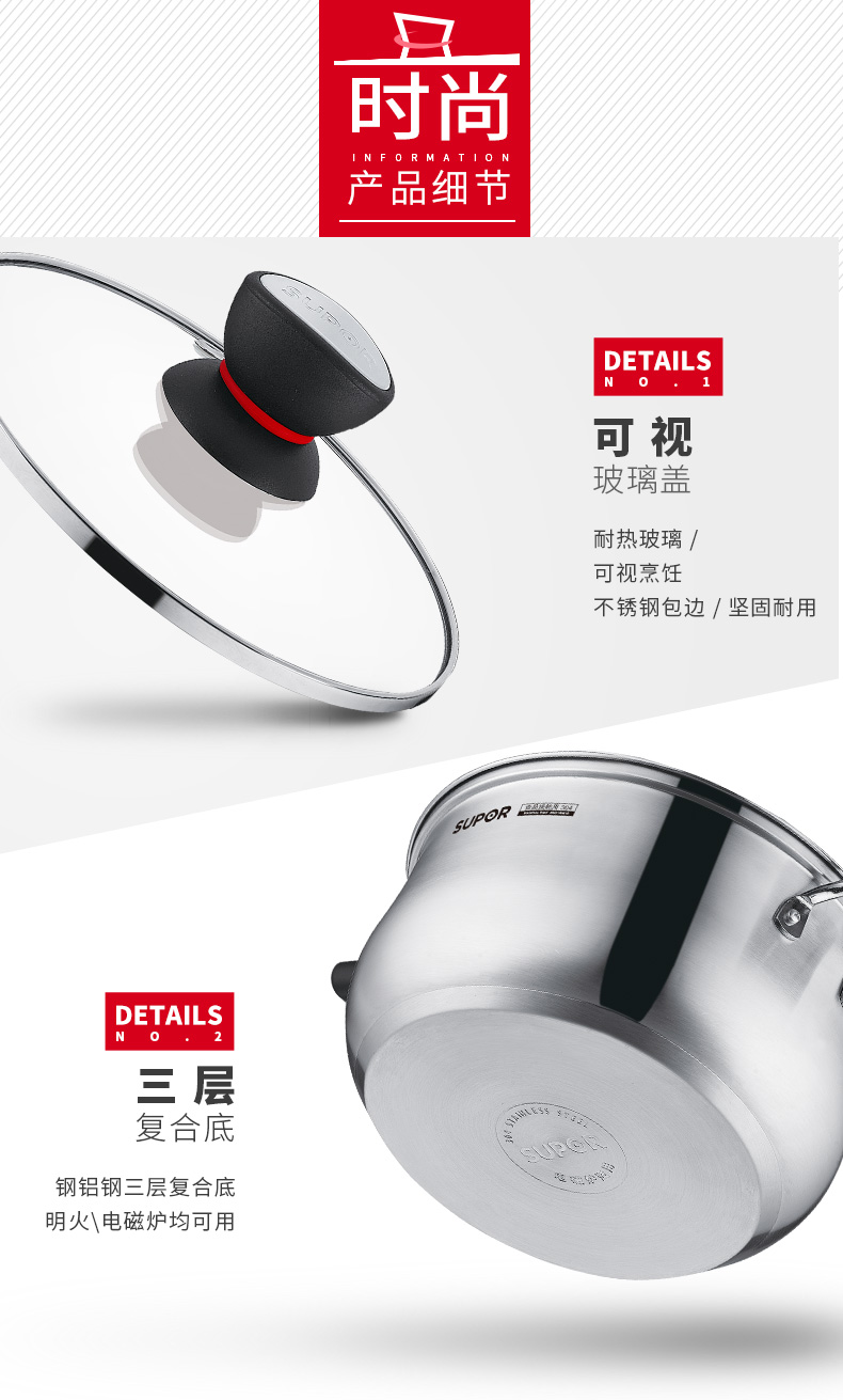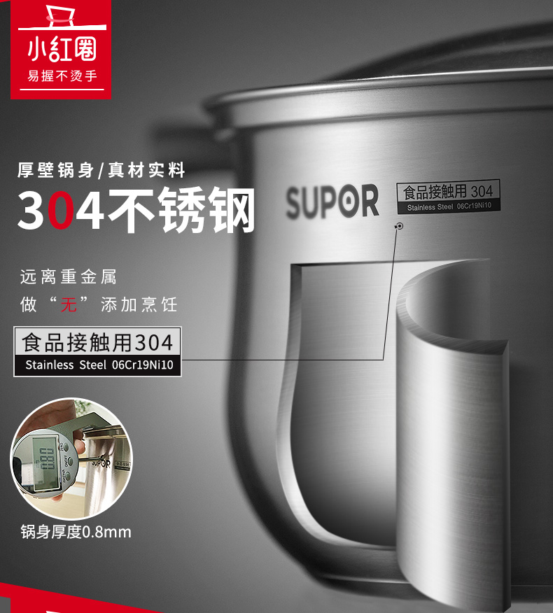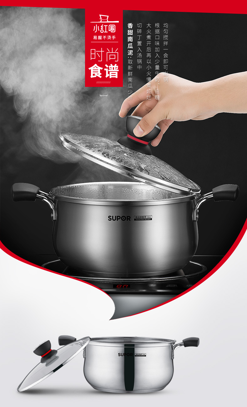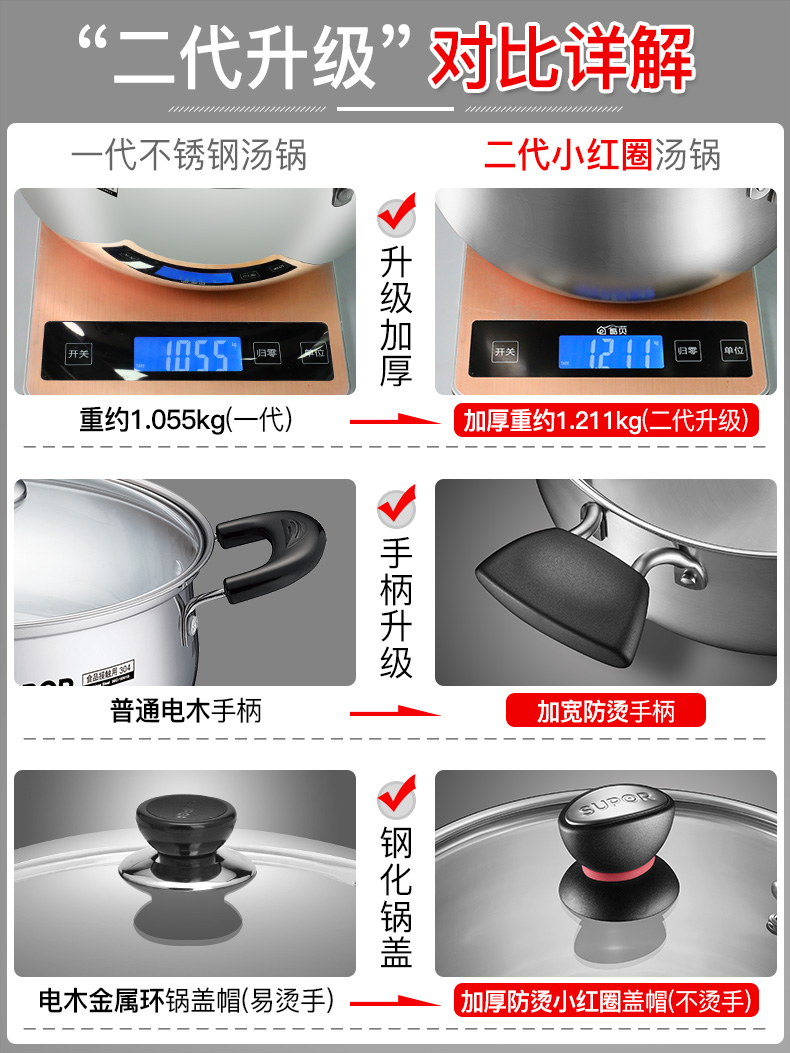 【送汤勺】厨房必备的汤锅哦,苏泊尔线下专柜品牌!!加厚304不锈钢材质,环保耐用,多效兼容,蒸煮焖炖,样样精通~想吃什么吃什么,营养美味一锅出~赶紧抢!【赠运费险】