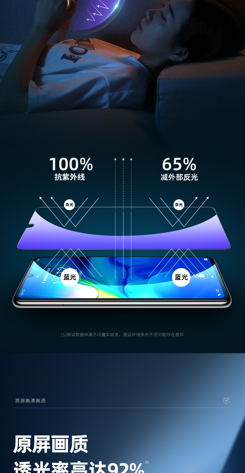 闪魔华为荣耀10钢化膜p20荣耀v20v10青春版p30pro全屏8x全覆盖20i抗蓝光paly高清v9手机贴膜9i防爆play玻璃