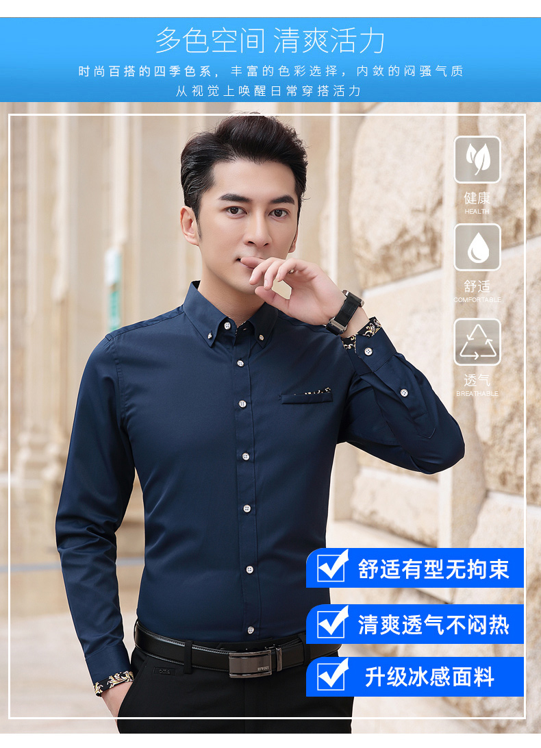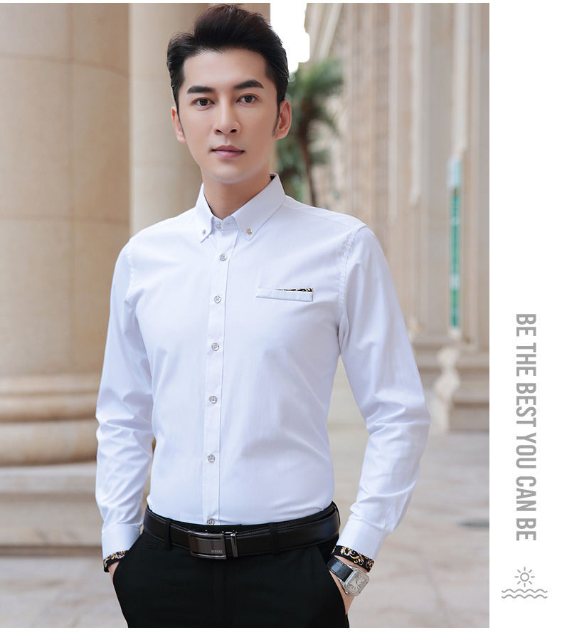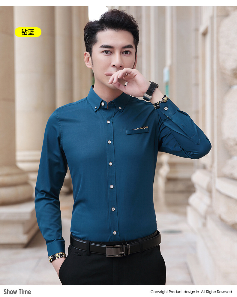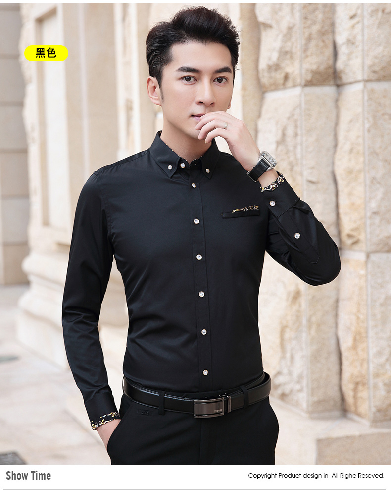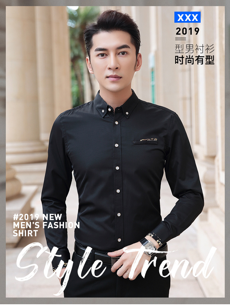 2019长袖衬衫男伴郎韩版潮青年休闲黑色纯色修身商务男士加绒衬衣