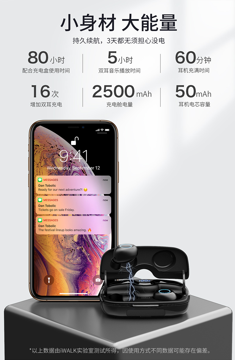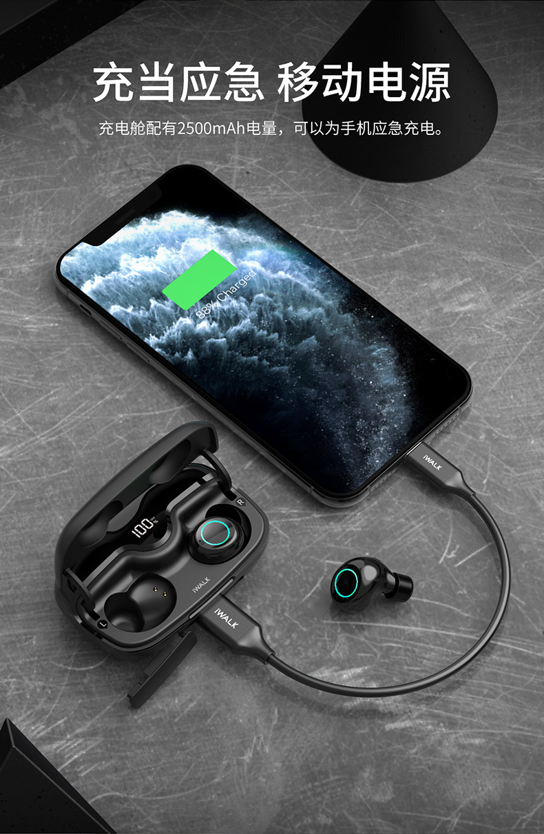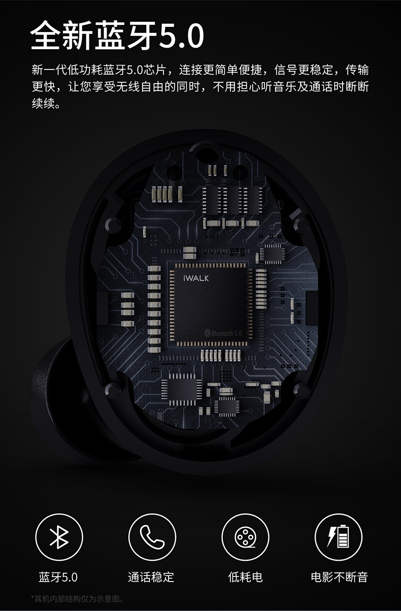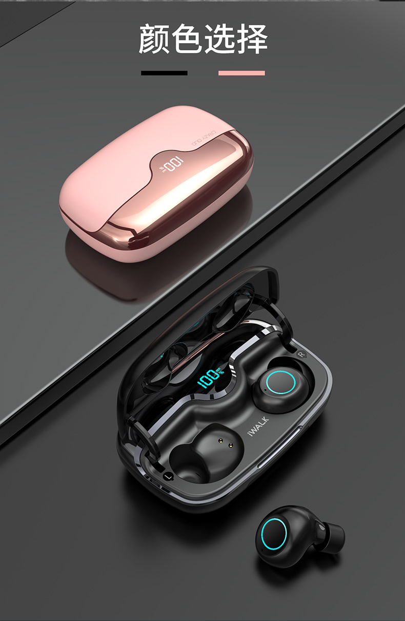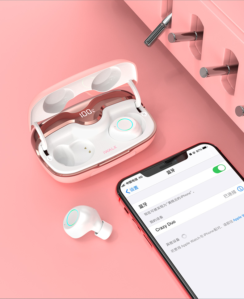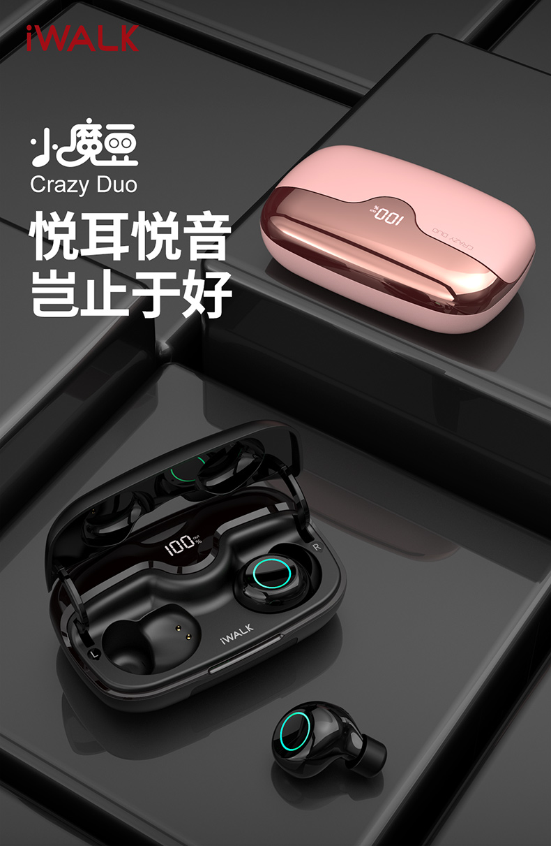 iWALK Crazy Duo新概念蓝牙耳机无线小型双耳入耳式耳塞隐形高音质苹果华为通用超长续航运动跑步无限篮牙5.0