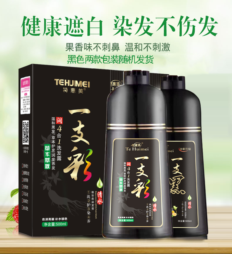 染发剂一洗黑洗发水纯黑色,植物天然无刺激,染发膏栗棕2019流行色,健康黑发加量升级版500ml