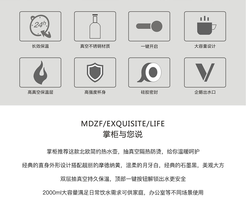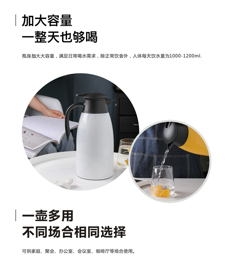 【双十一返场价49元速抢】~品质304不锈钢大容量2L长效保温】不锈钢内胆,双层真空,长效锁温!2L大容量,可供全天饮用。一键按压开启,解放大拇指,倒水不费力!满足全家用水需求~【七天无理由退换】