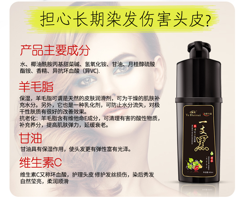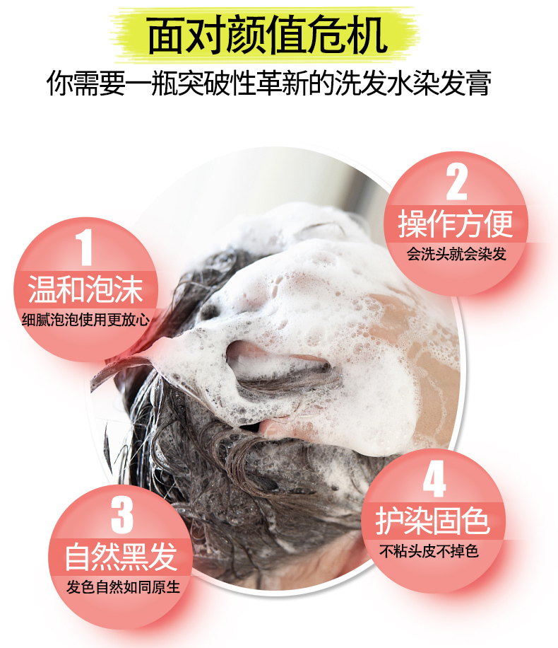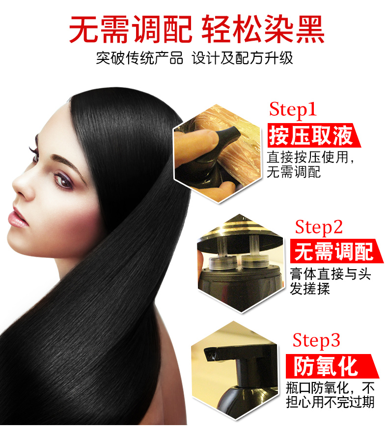 【全新升级款】染发剂植物一洗黑洗发水纯泡沫黑色男女自己泡泡染发,膏剂霜一支黑,只黑头发,不黑头皮,享受泡泡染发